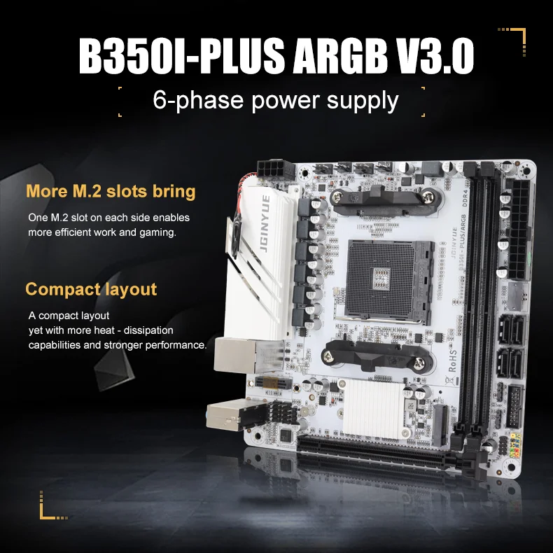 JGINYUE B350 AM4 placa base mini itx compatible con la serie Ryzen2000-4000 CPU EXPO DDR4 RAM PC de escritorio con WiFi B350i PLUS ARGB