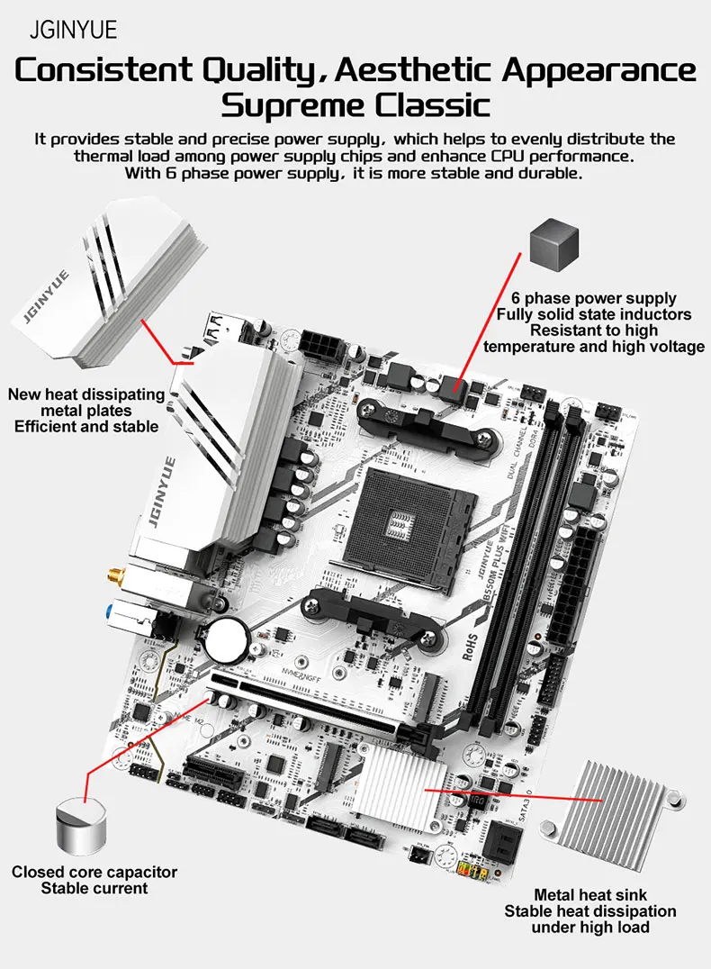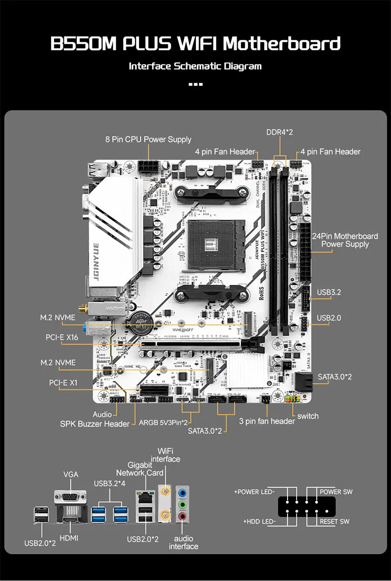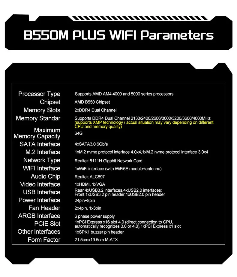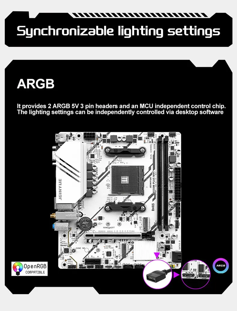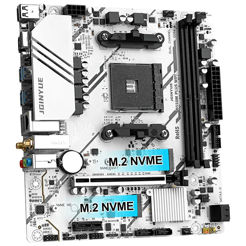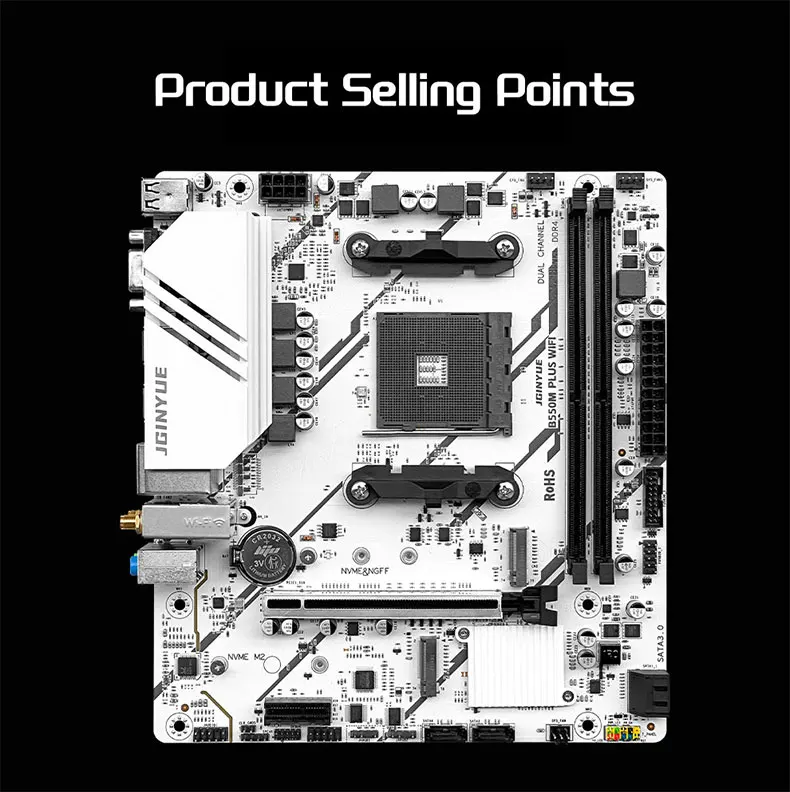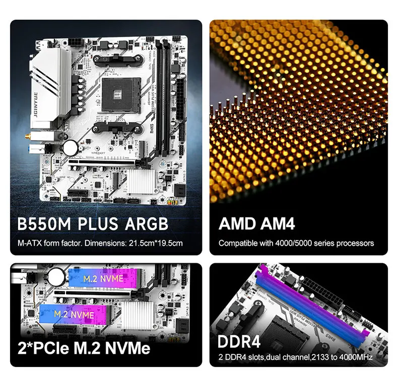Comprar JGINYUE B550M WIFI plus AM4 Micro-ATX placa base para juegos DDR4 PCIE4.0 WIFI 6 Dual M.2 ARGB soporte para AMD 4000 5000 Series
