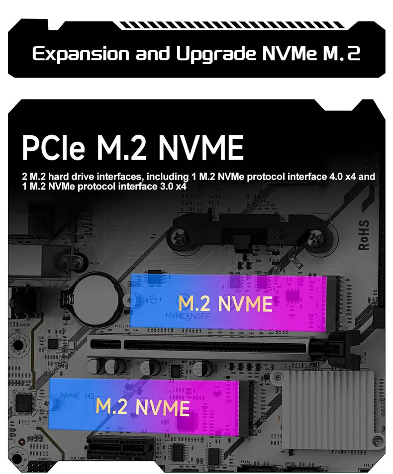 Con soporte PCI-E 4.0, esta placa base permite la transferencia de datos de alta velocidad para las últimas tarjetas gráficas y otros periféricos.