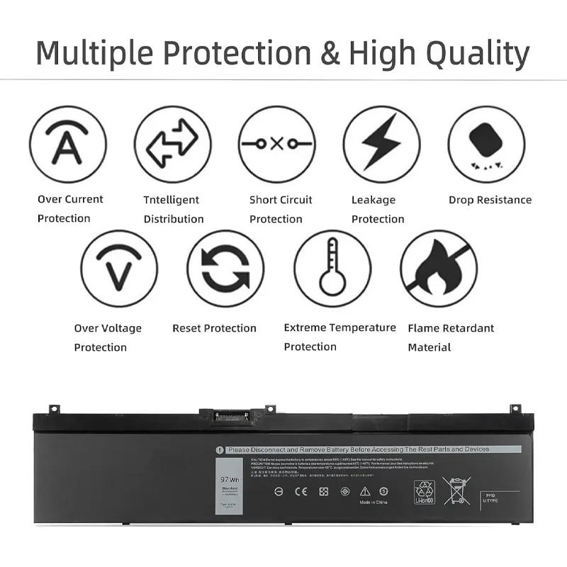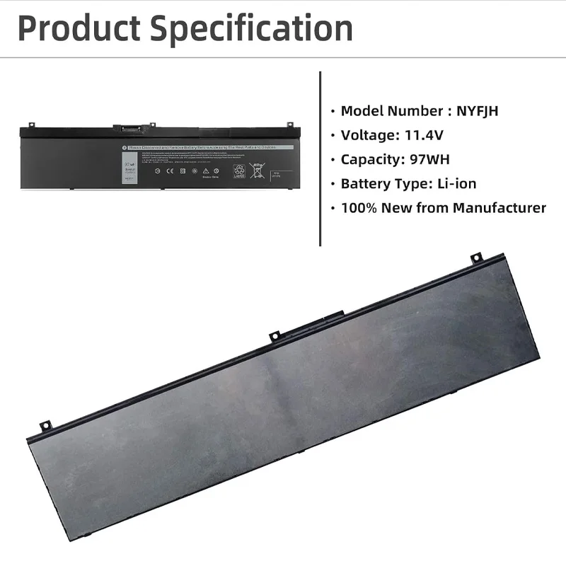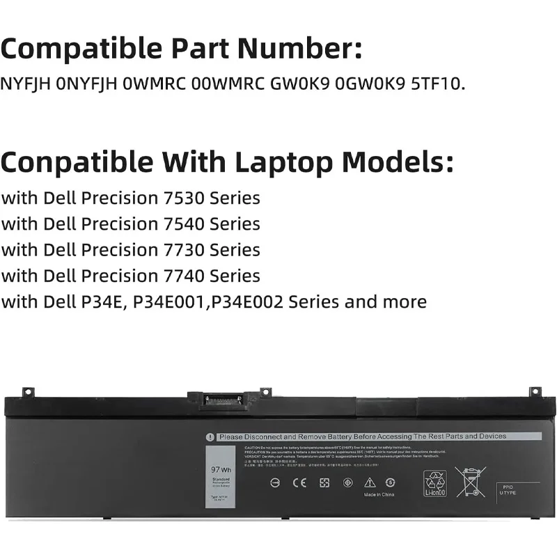Compatible con la serie Dell Precision 7530 P74F 7730 P34E 7540 7740.Elija el modelo y capacidad de batería DERECHO de acuerdo con la batería original de su computadora portátil, la batería que vendemos: NYFJH 97Wh.