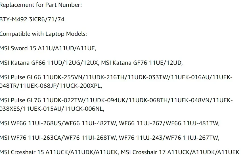 Comprar JGTM BTY-M492 11,4 V 53,5Wh batería del ordenador portátil para MSI Pulse GL66 11UDK-076 GL66-11UDK-066JP 11UEK-050XFR 11UEK-007FR Notbook