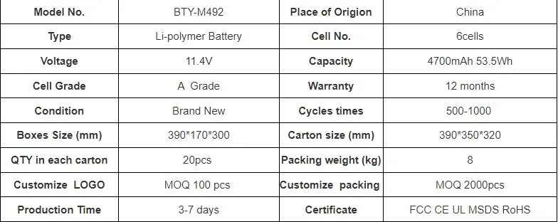 Ofrecemos precios competitivos y plazos de entrega cortos, respuesta rápida a las consultas de productos y un servicio considerable. La cooperación beneficiosa para todos y el éxito con el socio es nuestro objetivo eterno. Nuestro propósito: hacer que el reemplazo de la batería de la computadora portátil sea económico para el usuario final y rentable para el revendedor y el proveedor de servicios. Mingyiyuan espera sinceramente cooperar con usted para lograr un progreso colectivo en un futuro próximo.