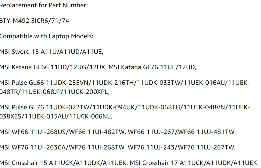 Comprar JGTM nueva batería Compatible para ordenador portátil BTY-M492 11,1 V 53,5 Wh para MSI Pulse GL66 11UDK-076 GL66-11UDK-066JP 11UEK-050XFR 11UEK-007FR