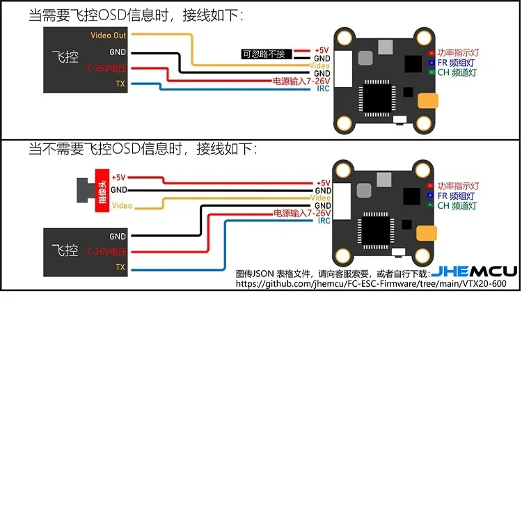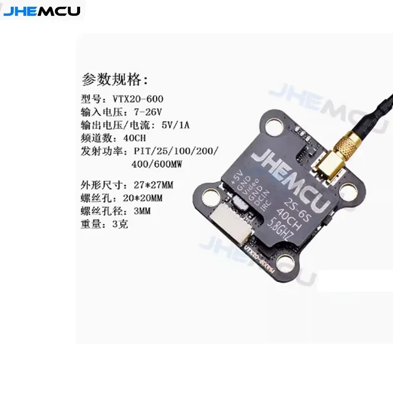 JHEMCU VTX20-600 FPV 5,8G 7-26V 0MW/200/400/600/40CH transmisor VTX para modelos RC marco de Dron de carreras con visión en primera persona de largo alcance
