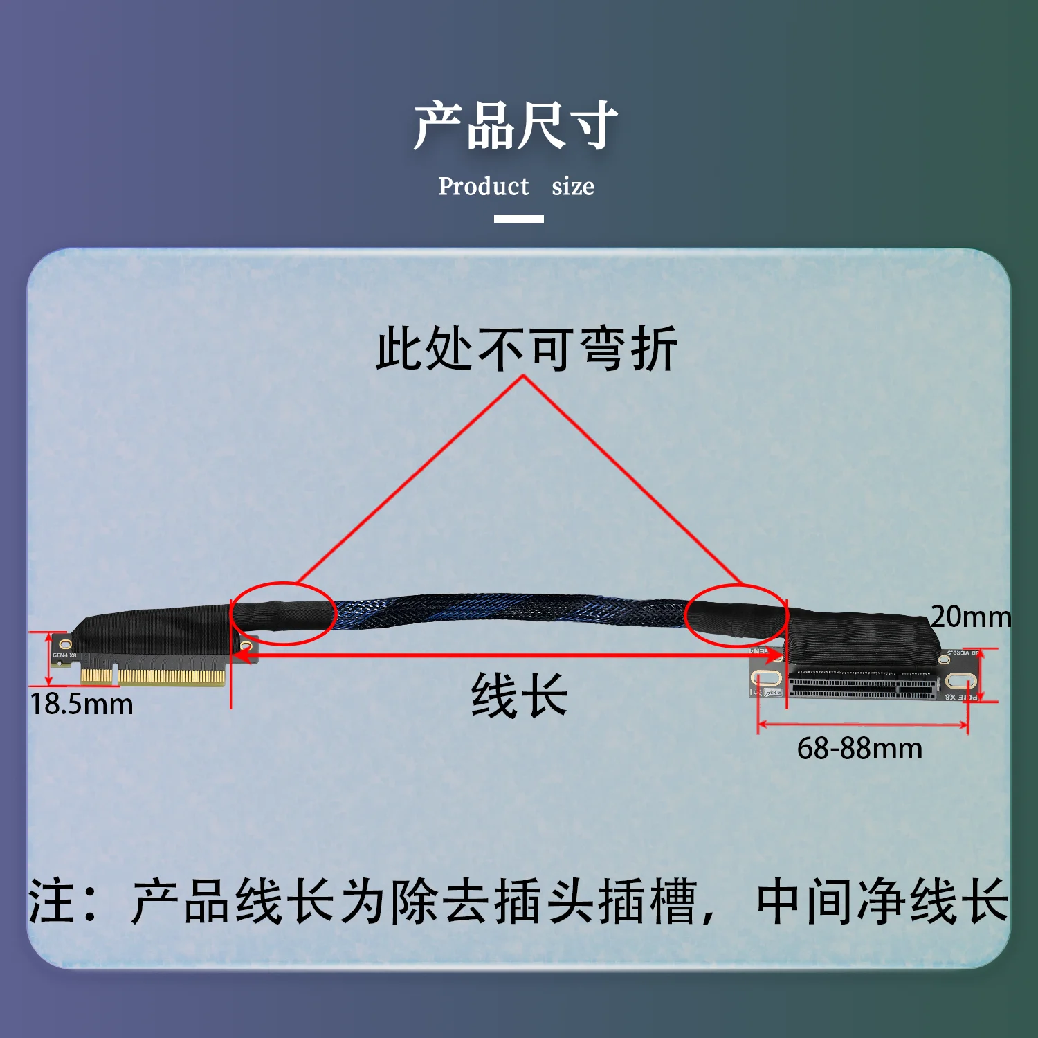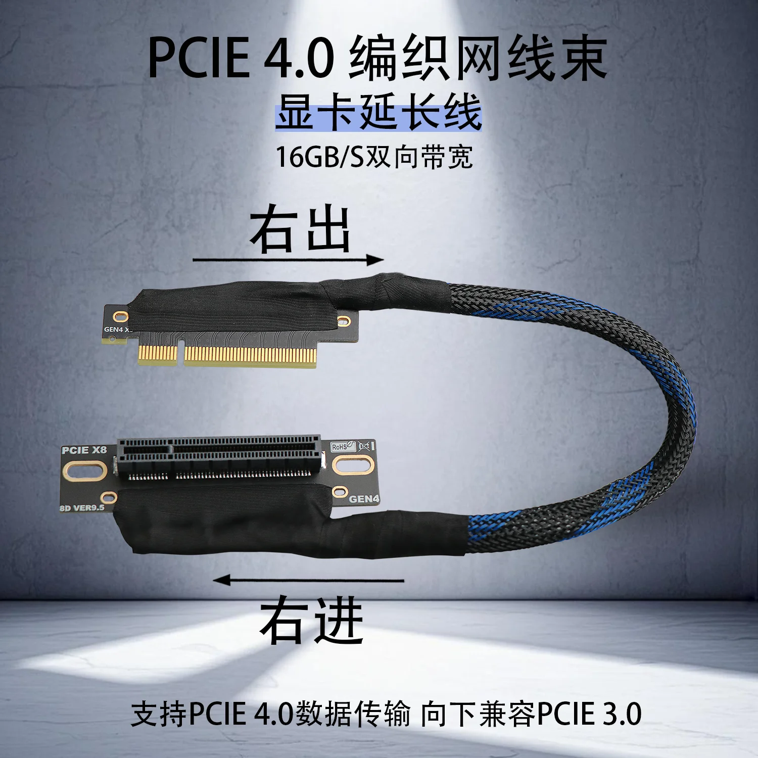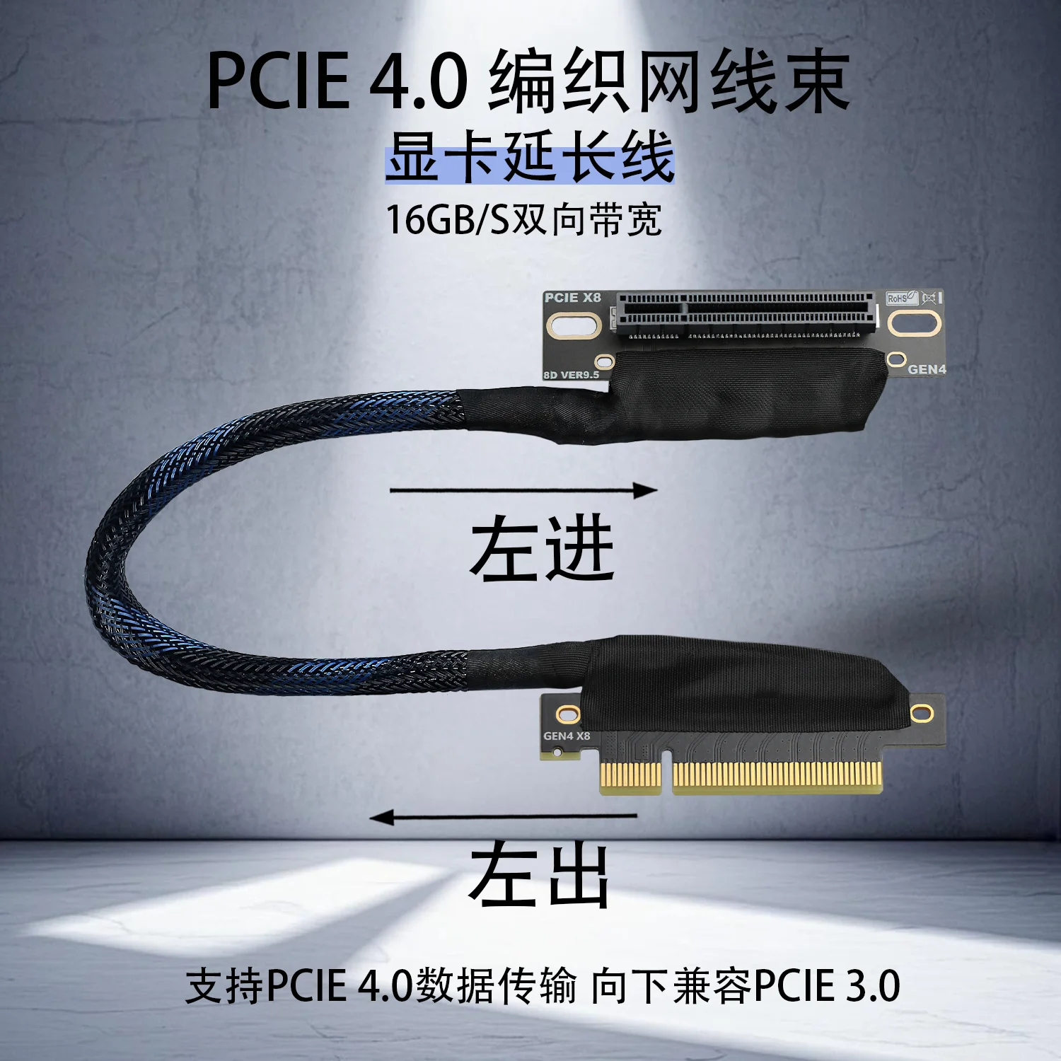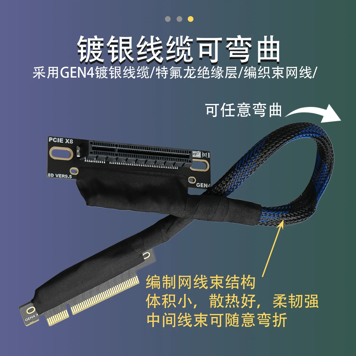 JHH-Link PCIE 4,0 X8 a X8 tarjeta gráfica GPU Cable de extensión malla trenzada curva Gen4 8X Cable elevador para servidor AI chasis incorporado