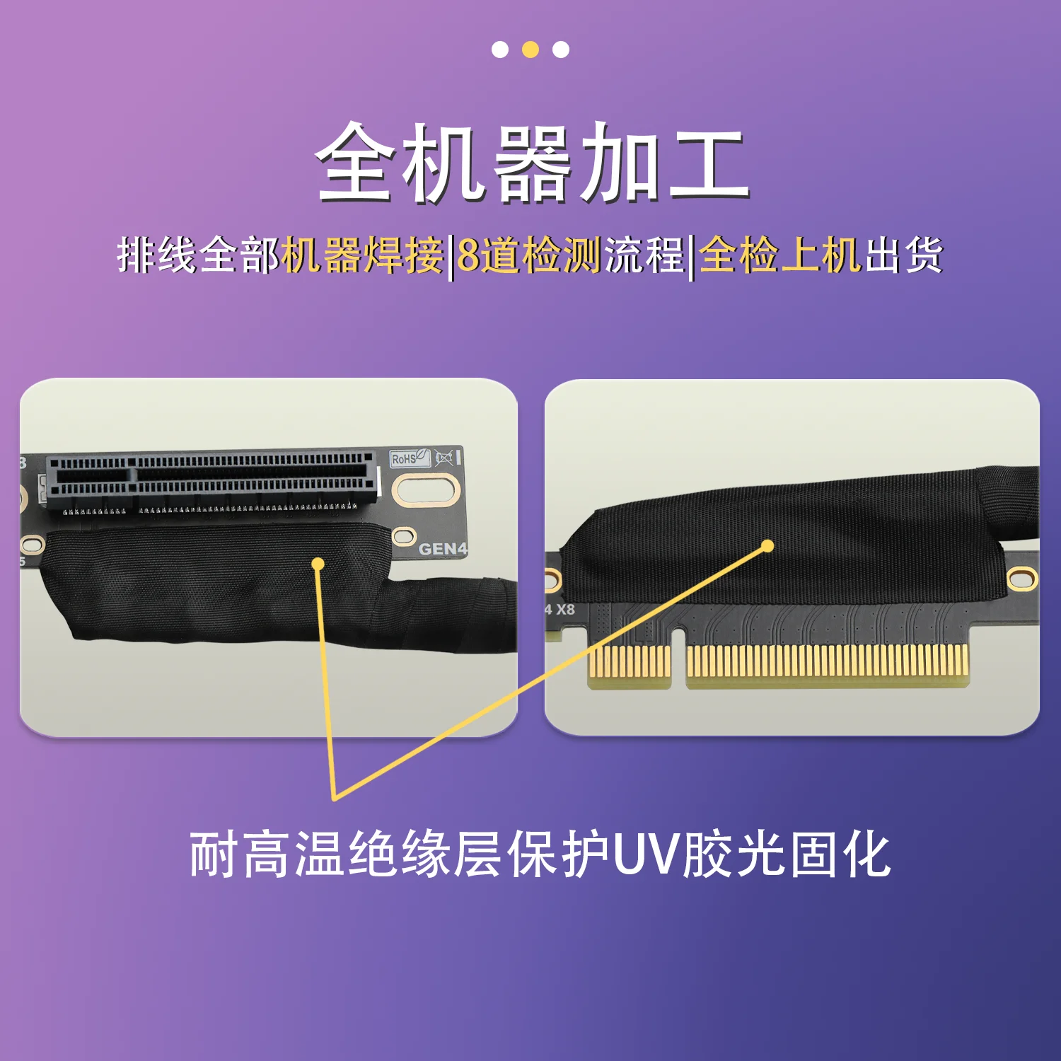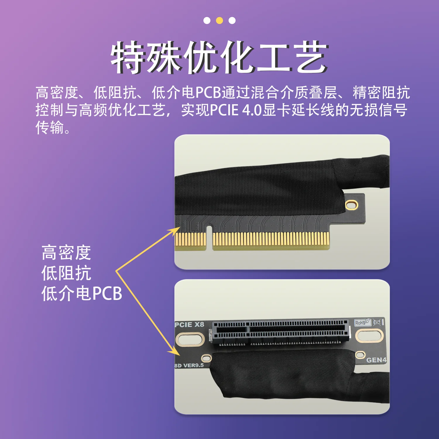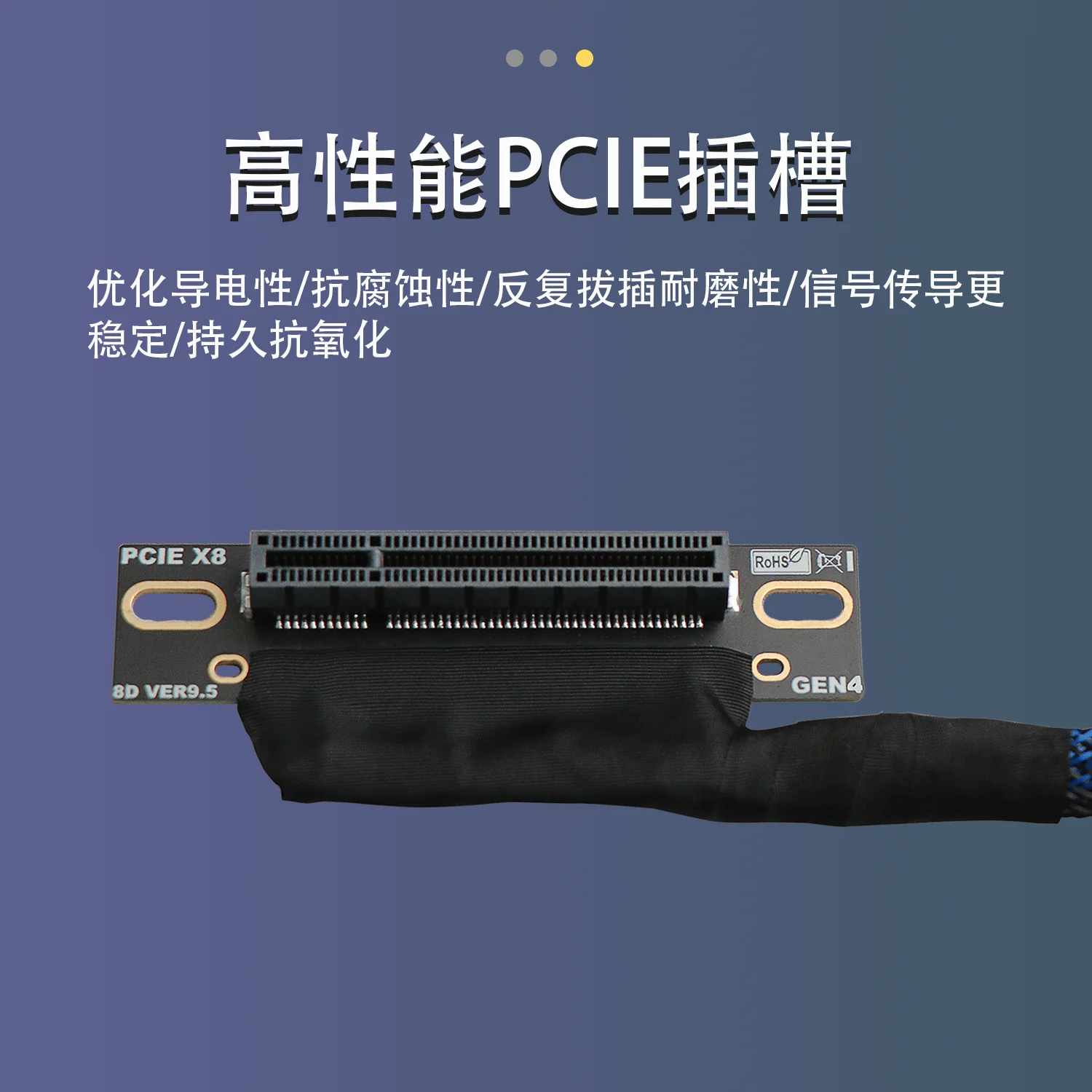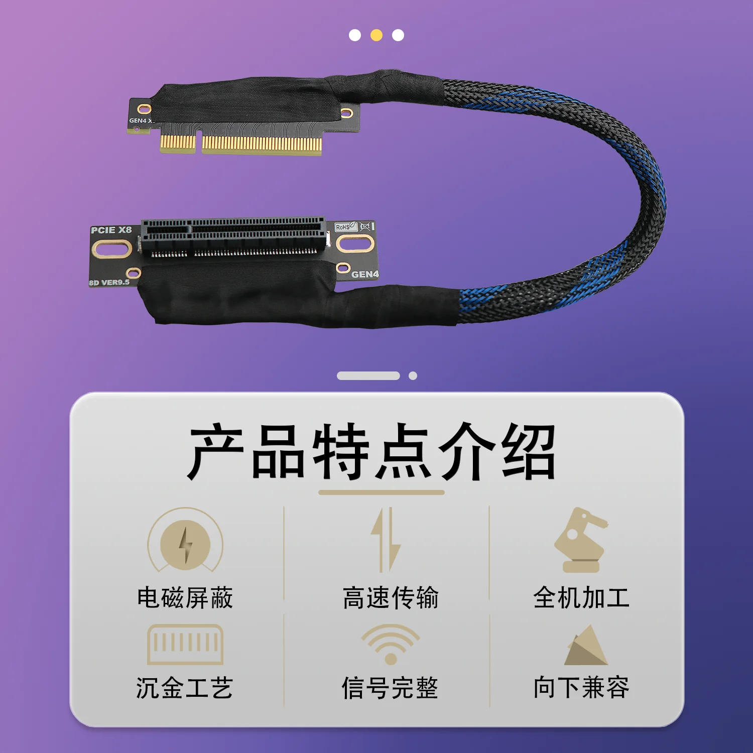 JHH-Link PCIE 4,0 X8 a X8 tarjeta gráfica GPU Cable de extensión malla trenzada curva Gen4 8X Cable elevador para servidor AI chasis incorporado