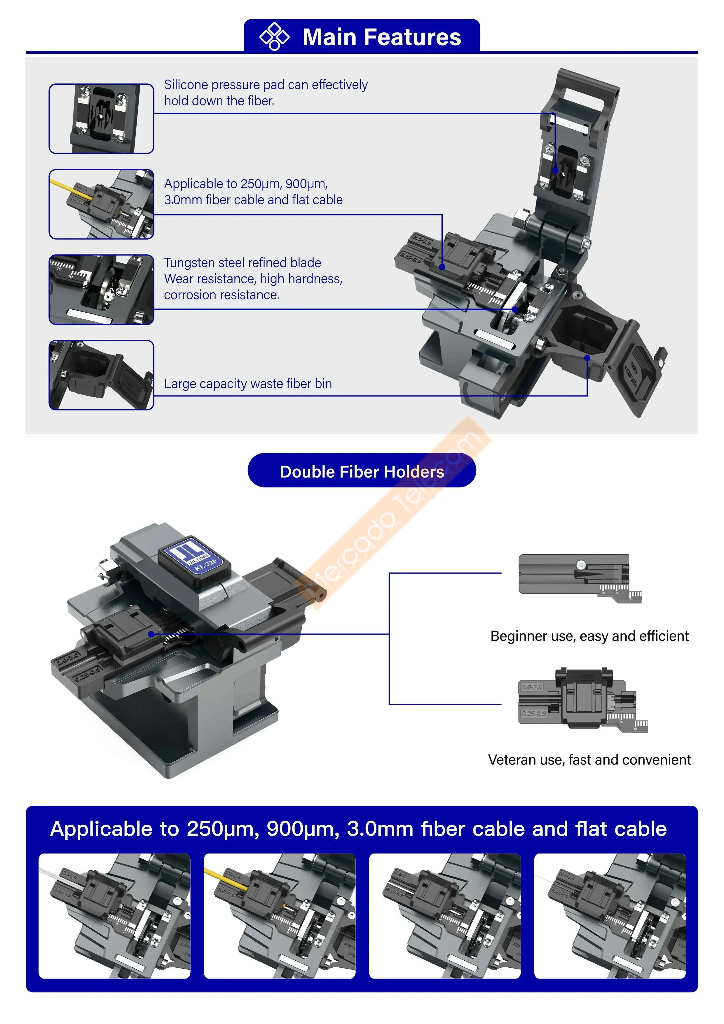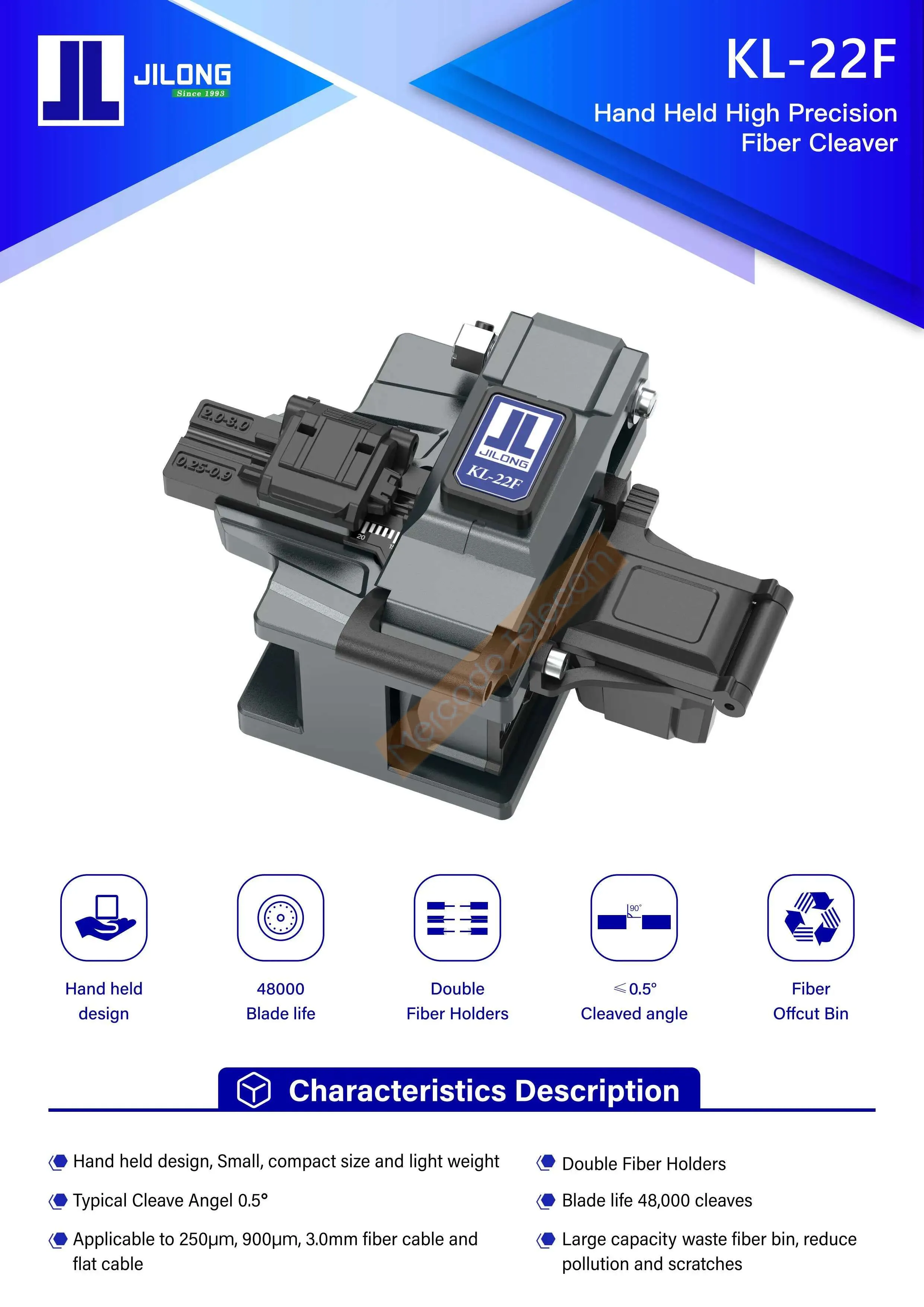 JILONG-cutilla de fibra de mano de alta precisión KL-22F, herramientas de cuchillo de corte de Cable de fibra óptica, hoja facial 16