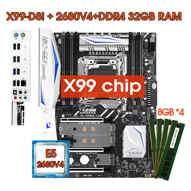 Comprar JINGSHA-conjunto de placa base X99 D8I LGA 2011, 3 con proceso E5 2680V4 y 4x8GB = 32GB DDR4 2133MHZ ECC REG RAM M.2 WIFI NVME M.2