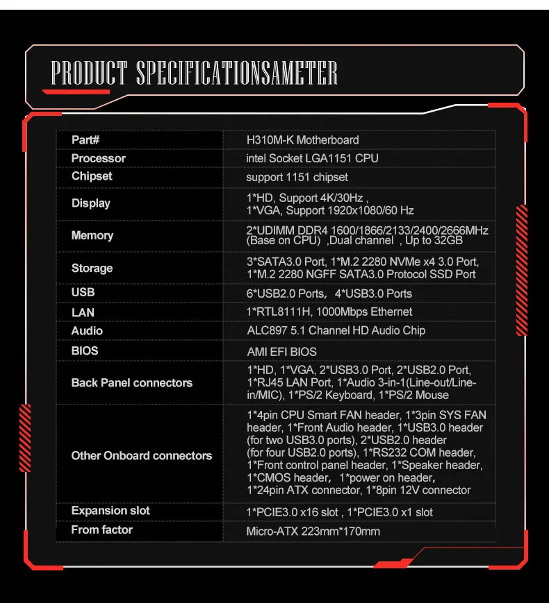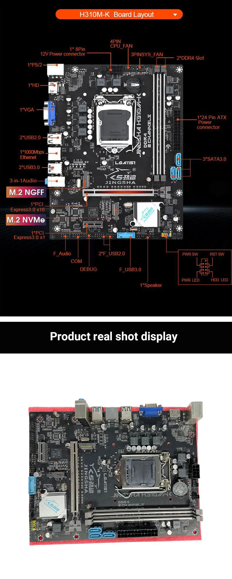 Comprar JINGSHA-placa base H310M-K LGA 1151, compatible con Intel Core 6/7/8/9 Gen CPU, memoria DDR4, 32GB, SATA3, M.2, NVME, NGFF, PCIE3, M-ATX, H310