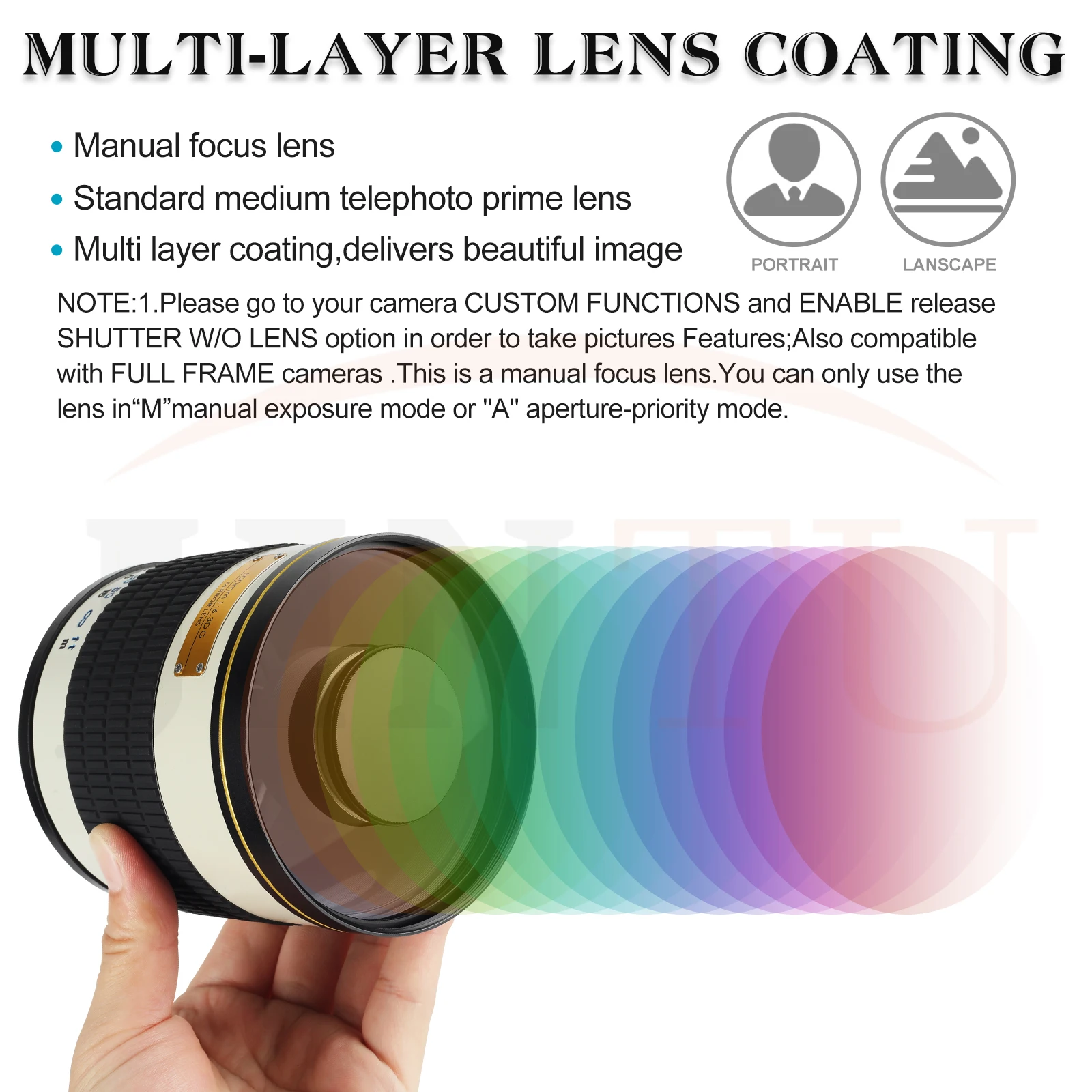 Comprar JINTU-lente de espejo ultrateleobjetivo, accesorio para cámara Canon 5D MARK III II 5DIV 1D 1DS 60D 1000D 760D 750D 700D 650D 550D 70D, 500mm f/6,3