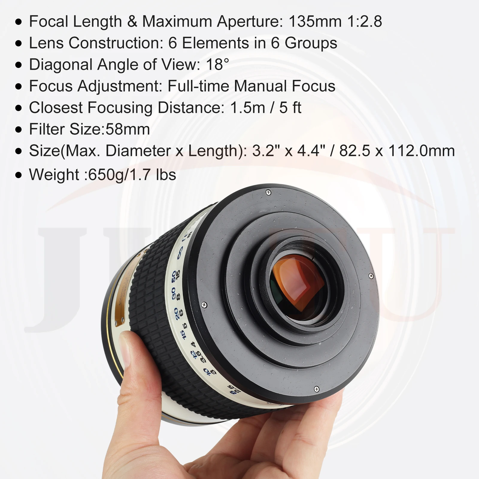 EstoJintuEl ultra teleobjetivo manual de 500mm, la lente de espejo multicapa es una lente completamente nueva. Increíblemente compacto y ligero, esta lente esIdeal para fotografía deportiva y de vida salvaje... Tiene una apertura fija de F/6,3 que es más rápida que la mayoría de las otras lentes de 500mm. Esta lente se conecta a su cámara con elAdaptador T-Mount incluidoY funciona con cámaras de enfoque automático en modo manual.