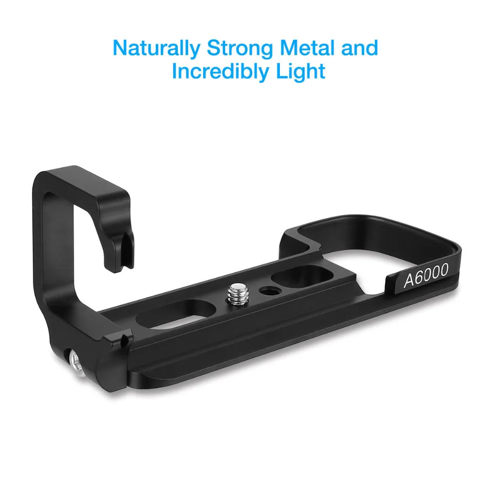 Descripción:Los "soportes en L" de liberación rápida de ángulo recto se ajustan a la base de su cámara digital O de película, lo que permite un fácil acceso a su paquete de baterías O puertos de E/S. Suelte, gire y vuelva a montar rápidamente su cámara para un disparo horizontal o vertical-no más voltear la cabeza de su trípode en su lado o perturbar su posición de disparo. Estas placas funcionan especialmente bien cuando está utilizando lentes macro, gran angular y de cambio de inclinación más cortos.Características:★Modelo: LB-A6000★Hecho de aluminio de aviación, mecanizado de precisión CNC, tratamiento de oxidación superficial, diseño ligero, con tornillo de acero inoxidable.★Diseñado específicamente para Sony A6000, diseño de cuerpo dividido, se puede desmontar, se puede utilizar verticalmente y se puede utilizar como agarre;★Peso: 67gMaterial y mano de obra:Aluminio ligero de aviación, mecanizado por CNC de precisión y superficie procesada con tratamiento de oxidación anodizado duro.Superficie muy lisa, arañazosAdecuado para:Arca-Swiss estándar, tanto la placa base Sony A6000 como la placa vertical son 100% compatibles con la abrazadera de liberación de palanca RRS.El paquete incluye:1 x soporte en L de liberación rápida1x llaveComprar JINTU-Soporte de Metal para cámara Sony Nex A6000 A6300, con placa en L, de liberación rápida