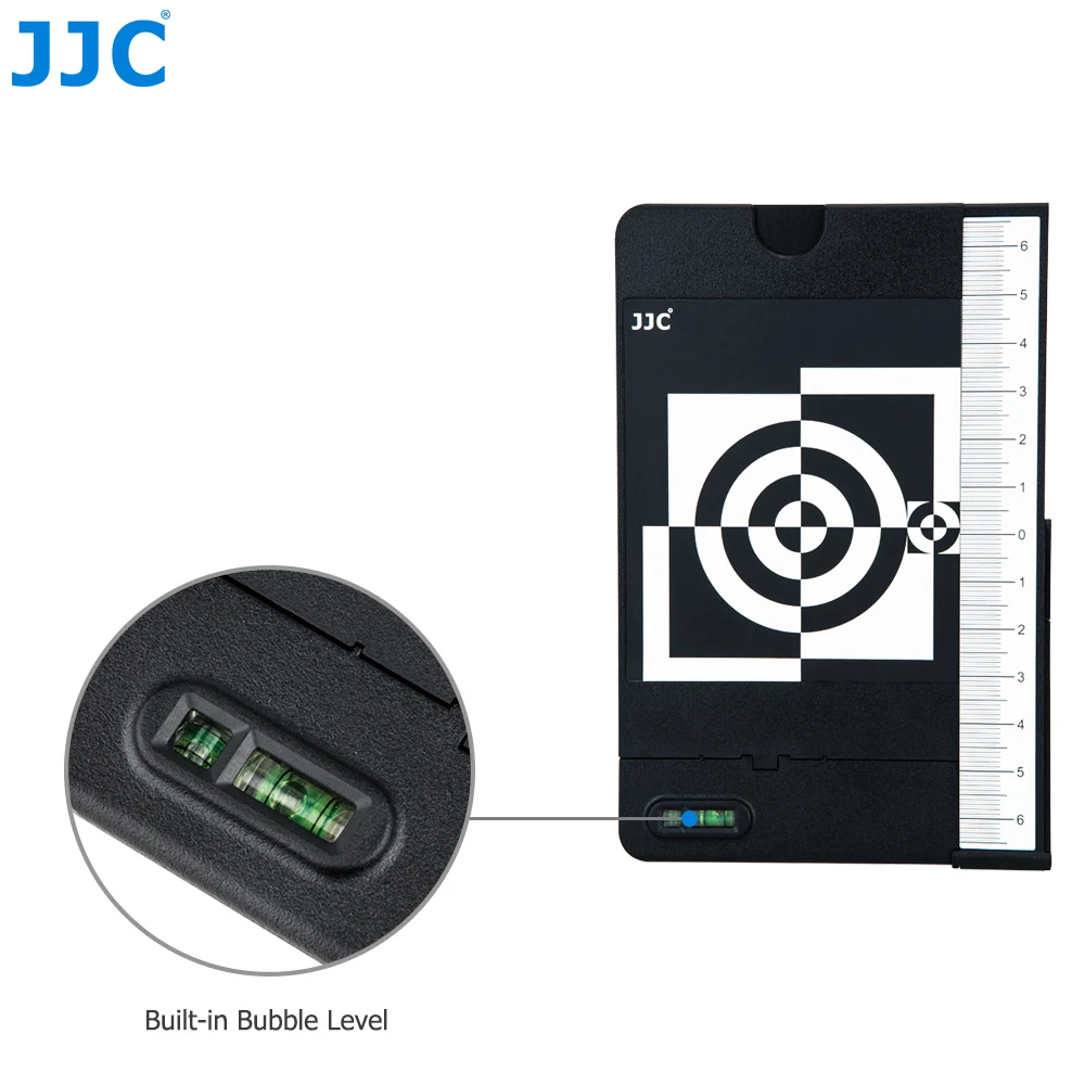 JJC ACA-02 consta de 1 ayuda de calibración de enfoque automático y 1 tarjeta de equilibrio de color.La ayuda de calibración de enfoque automático se adapta a la cámara con la función "AF Fine Tune" o "AF Micro Adjustment".Le permite probar el rendimiento del enfoque automático de su cámara y le ayuda a ajustar la función de enfoque automático de su cámara y lente.