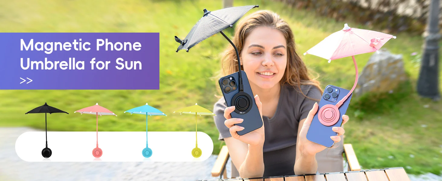 【Paraguas magnético fuerte para teléfono para sol】Este paraguas para teléfono cuenta con un fuerte anillo magnético que garantiza una fijación segura a la parte posterior de su teléfono.No te preocupes porque se caiga fácilmente.No afectará el efecto de atracción magnética debido al calor generado por la irradiación del sol.(Nota: no se recomienda utilizar este paraguas para teléfono en el automóvil).