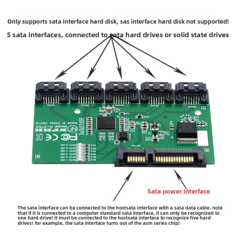 Comprar JMB575 una SATA a 5 SATA 3,0 tarjeta de expansión multiinterfaz 5 placa adaptadora Sata SA-054