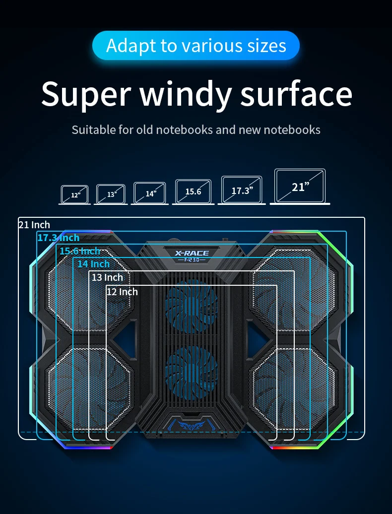 3. La almohadilla de refrigeración del portátil es adecuada para casi todos los portátiles de 12-21 pulgadas, como Dell, MacBook Pro, Alienware, ThinkPad, Lenovo, HP, Asus, etc.;