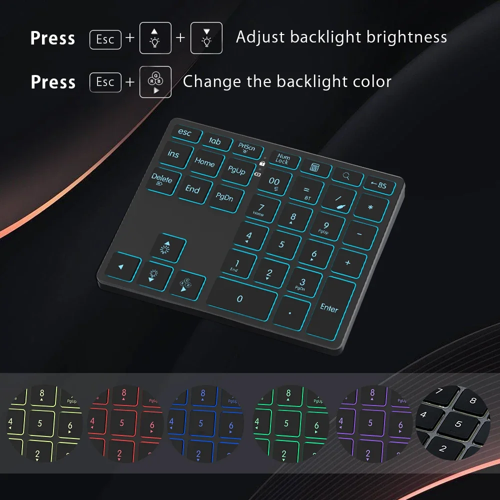 Comprar Jomaa teclado numérico retroiluminado RGB Bluetooth teclado numérico recargable 34 teclas teclado numérico externo delgado entrada de datos