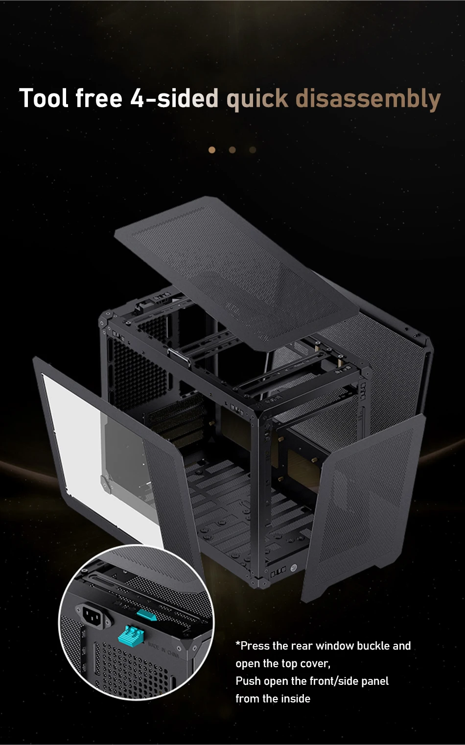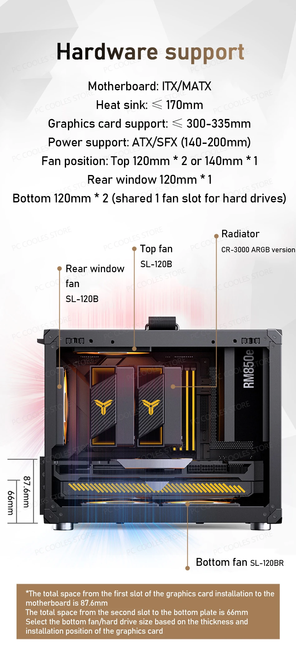 Fan (optional): Top 120mm * 2 or 140mm * 1 Rear window 120mm * 1 Bottom 120mm * 2 or HDD