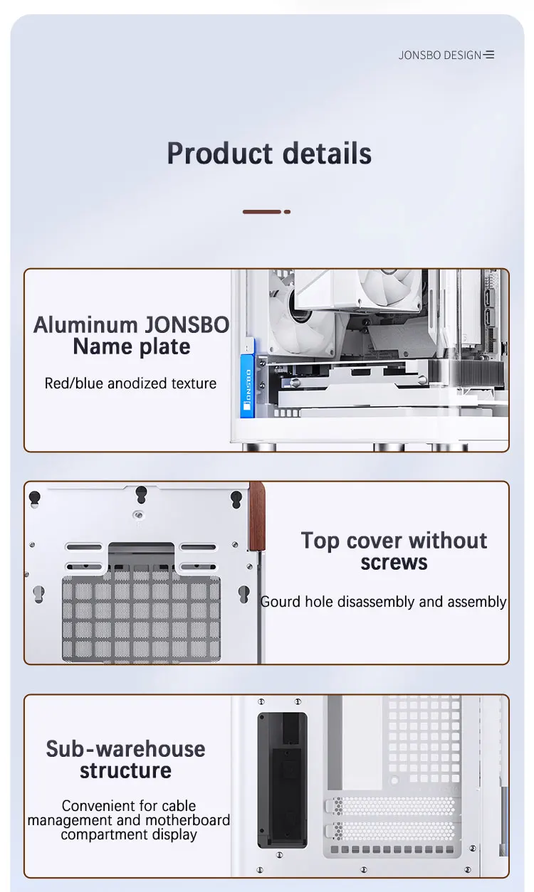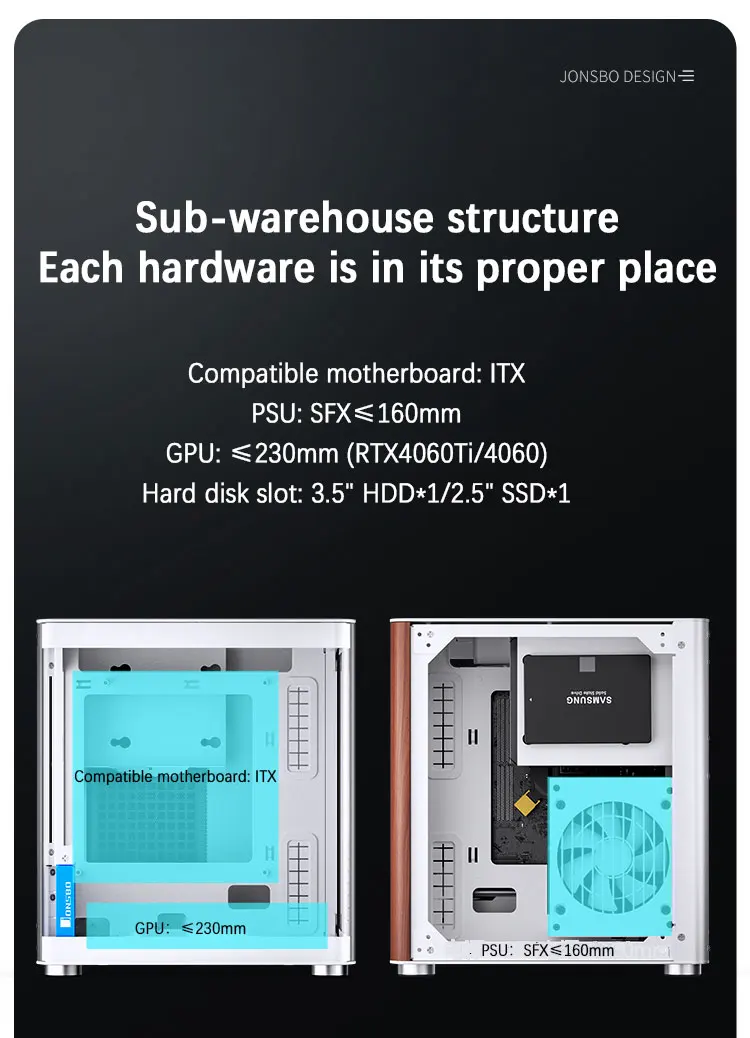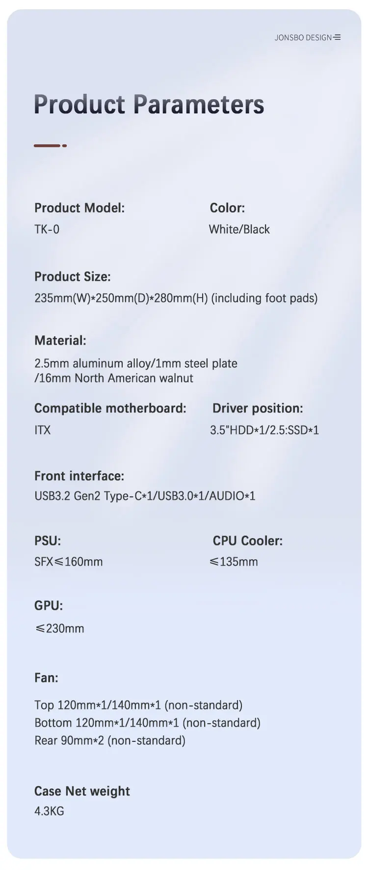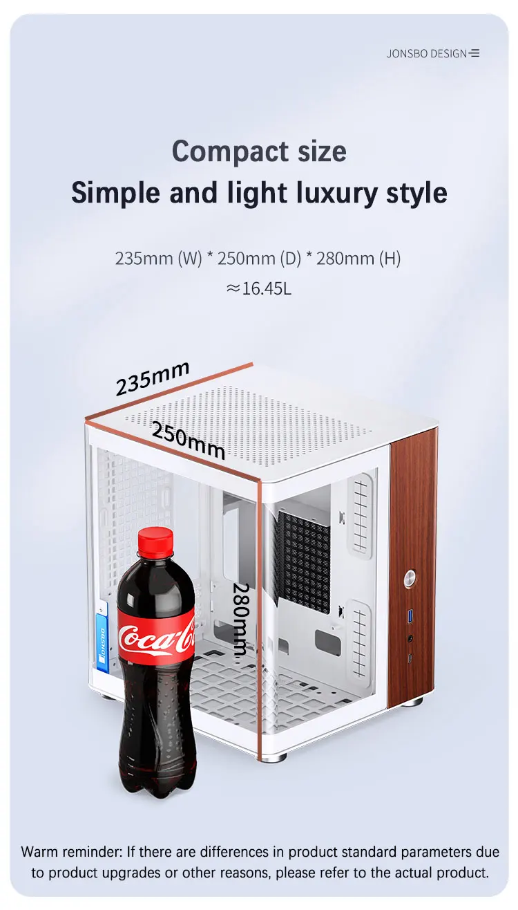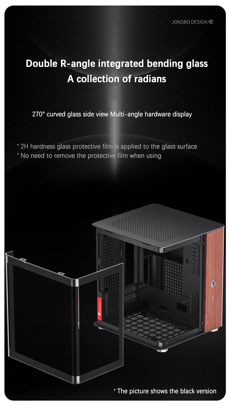 JONSBO-caja de vidrio curvado ITX para habitación, diseño de compartimento dividido, decoración de madera de nogal de América del Norte, chasis pequeño, vista al mar, TK-0