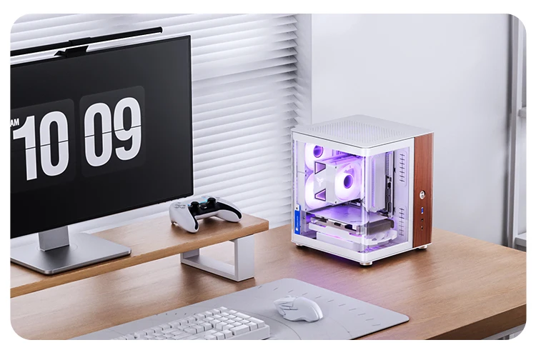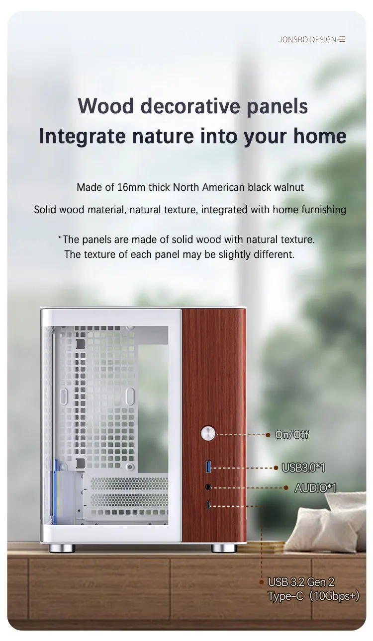 Comprar JONSBO-caja de vidrio curvado ITX para habitación, diseño de compartimento dividido, decoración de madera de nogal de América del Norte, chasis pequeño, vista al mar, TK-0