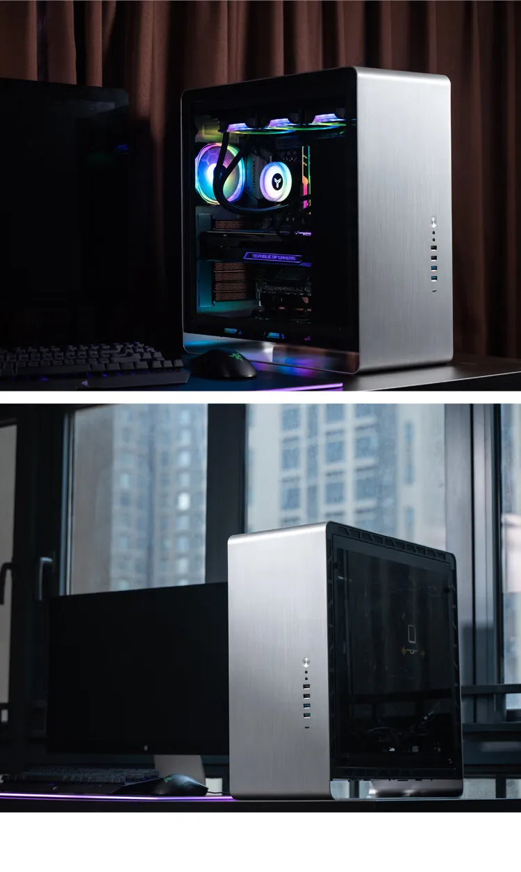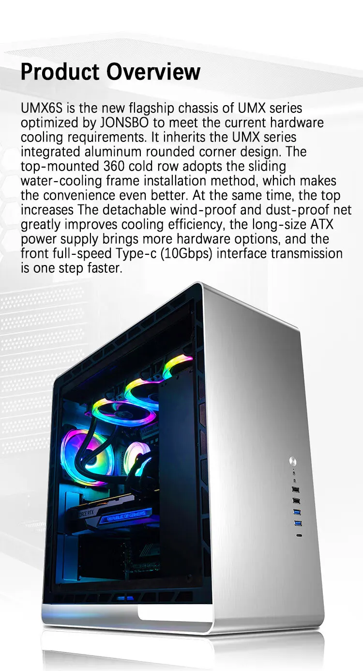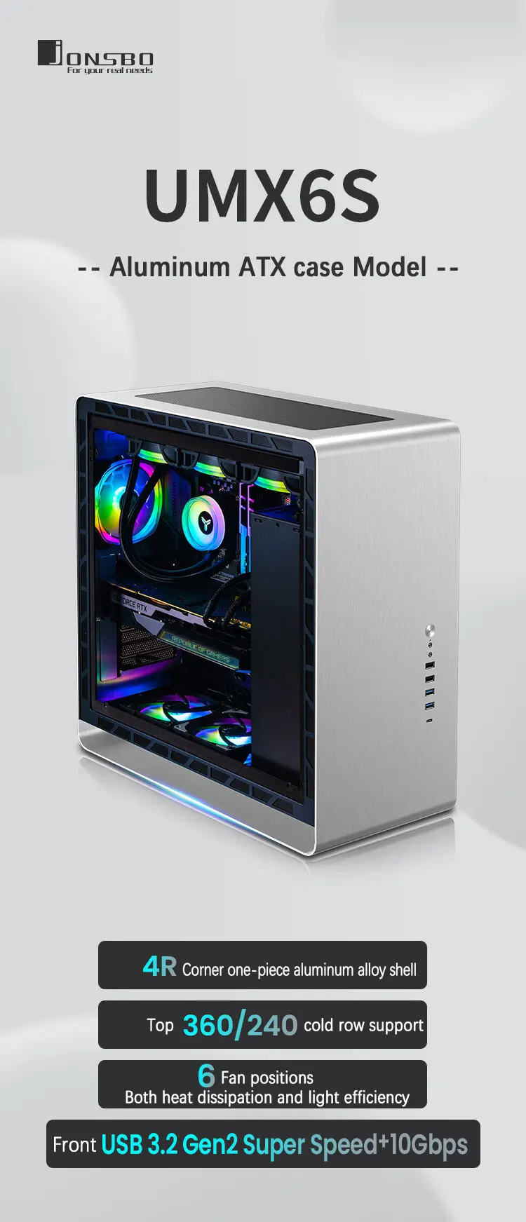 Comprar JONSBO-carcasa de aluminio UMX6 ATX, chasis de penetración lateral, compatible con placa base E-ATX/ATX /M-ATX, refrigeración por agua, 360