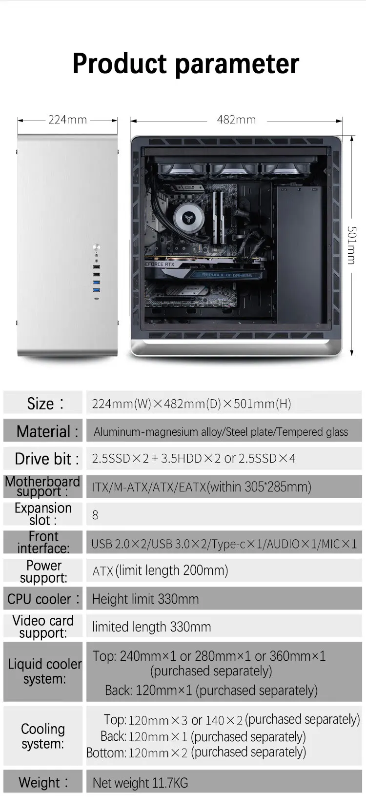 Tipo de soporte de la placa base: ITX/M-ATX/ATX/EATX (dentro de 305*285mm)