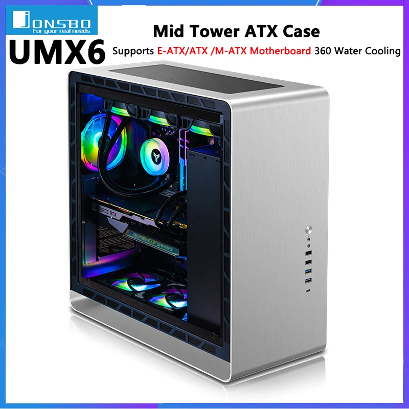 Comprar JONSBO-carcasa de aluminio UMX6 ATX, chasis de penetración lateral, compatible con placa base E-ATX/ATX /M-ATX, refrigeración por agua, 360
