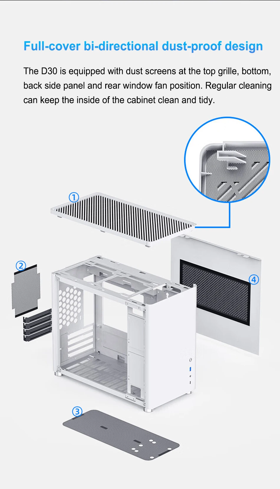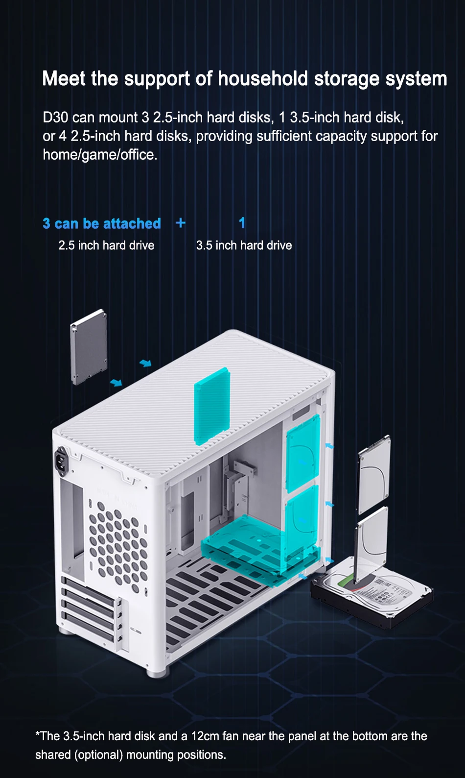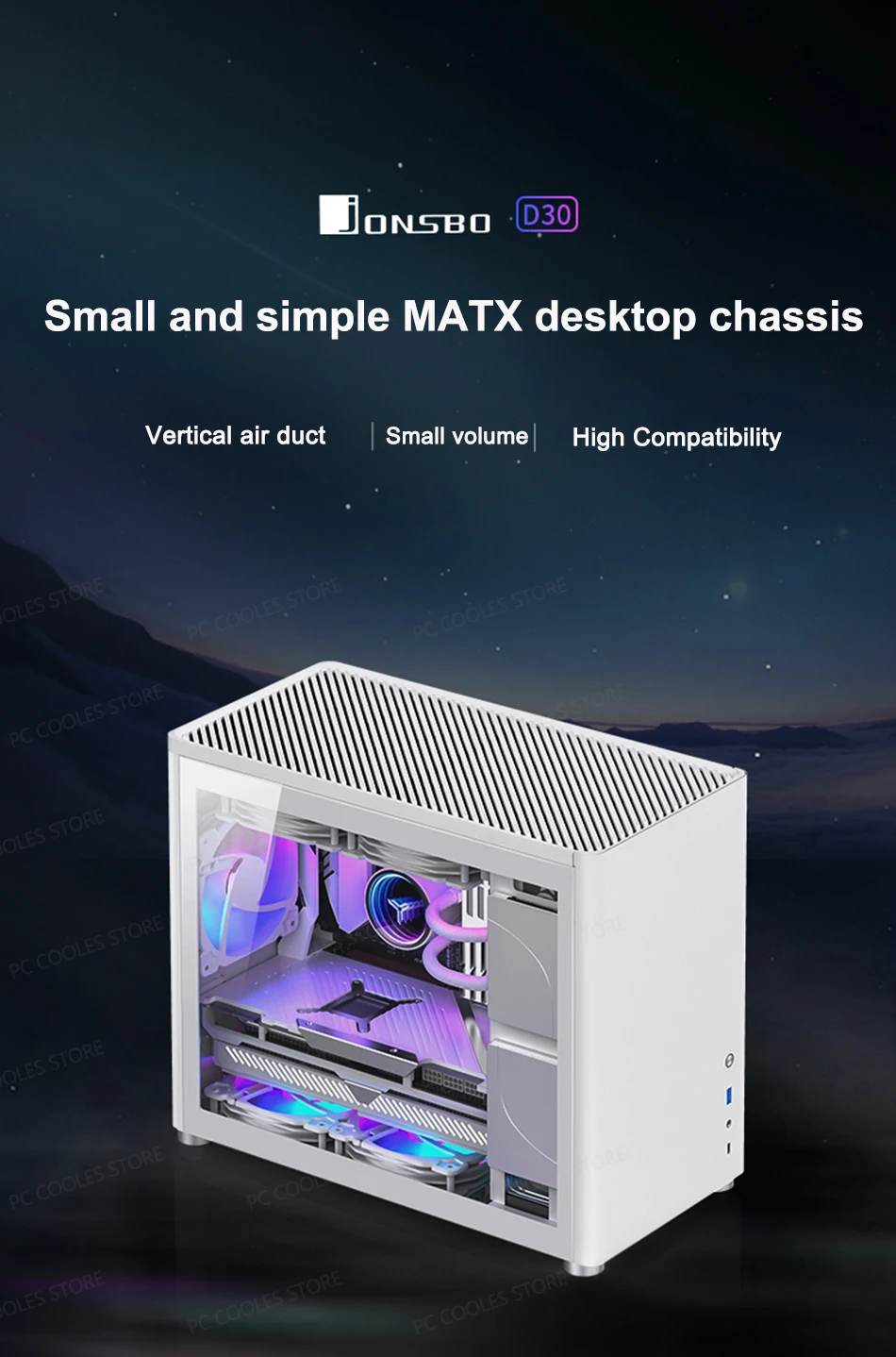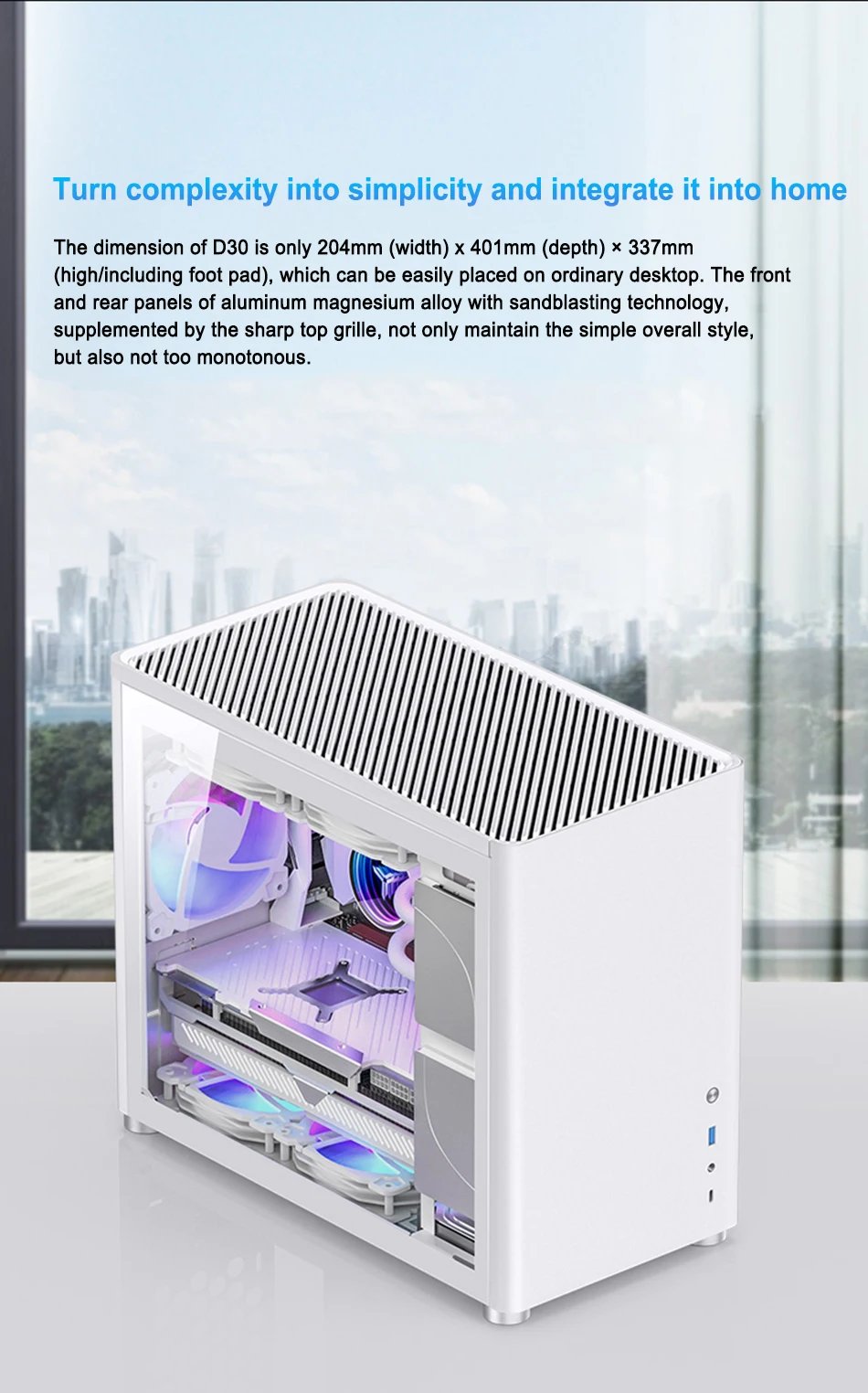 Comprar JONSBO-carcasa de M-ATX D30, carcasa de aluminio blanco/Negro/plateado, lateral transparente, ATX, soporte de chasis de escritorio, refrigeración por agua 240