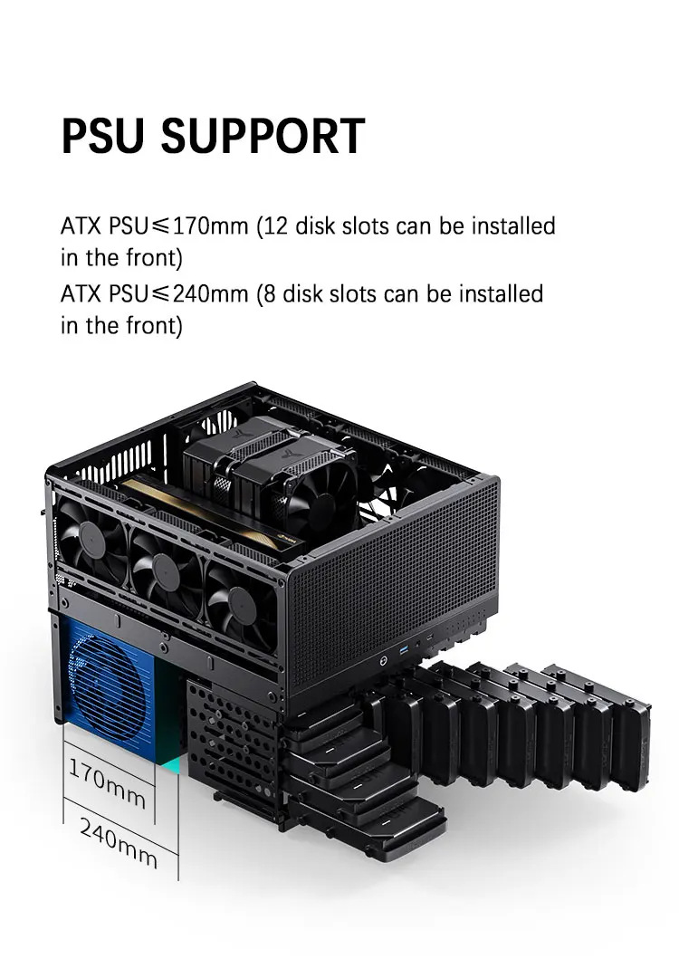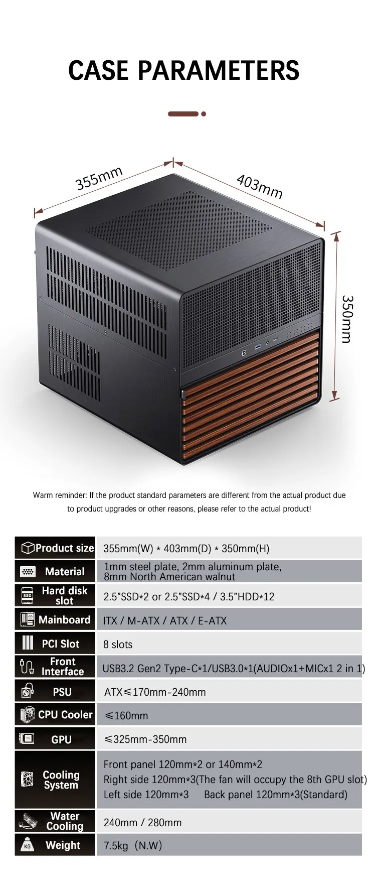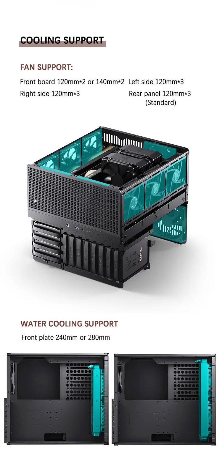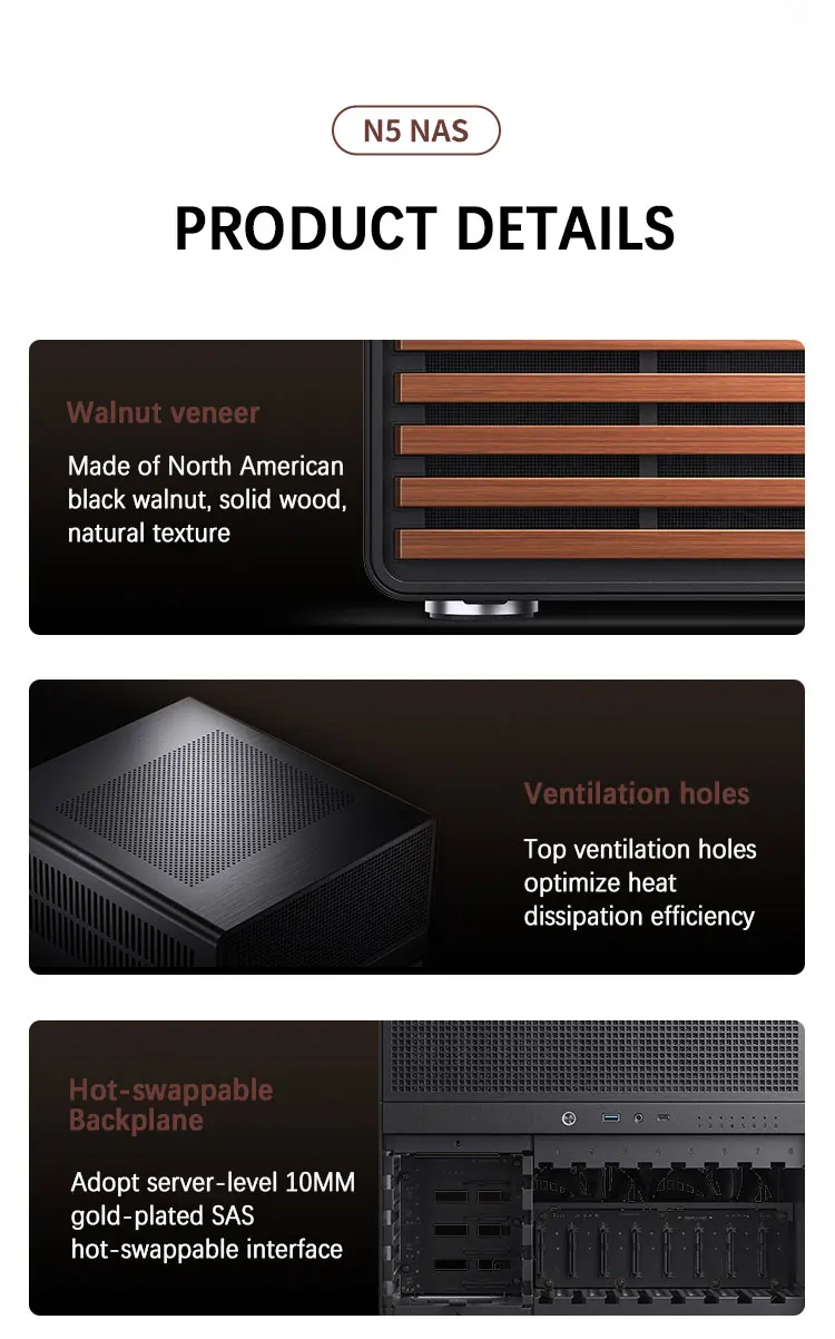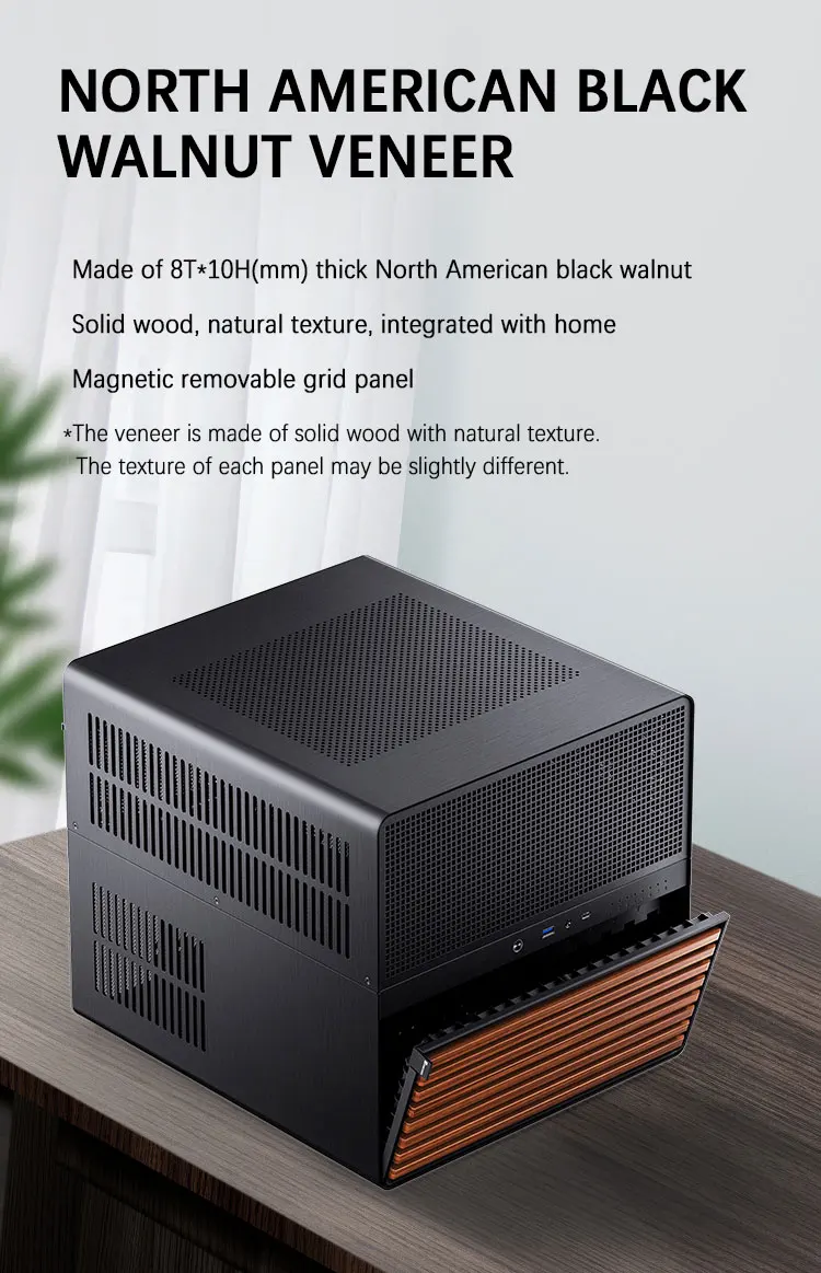 JONSBO-carcasa N5 NAS compatible con placas base ITX/M-ATX/ATX/E-ATX, PSU ATX, soporte de madera maciza de nogal de América del Norte, refrigeración por agua