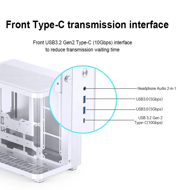 Interfaz frontal: USB3.2 Gen2 Tipo-C * 1/USB3.0 * 2/AUDIO * 1 + MIC * 1 (2 en 1)