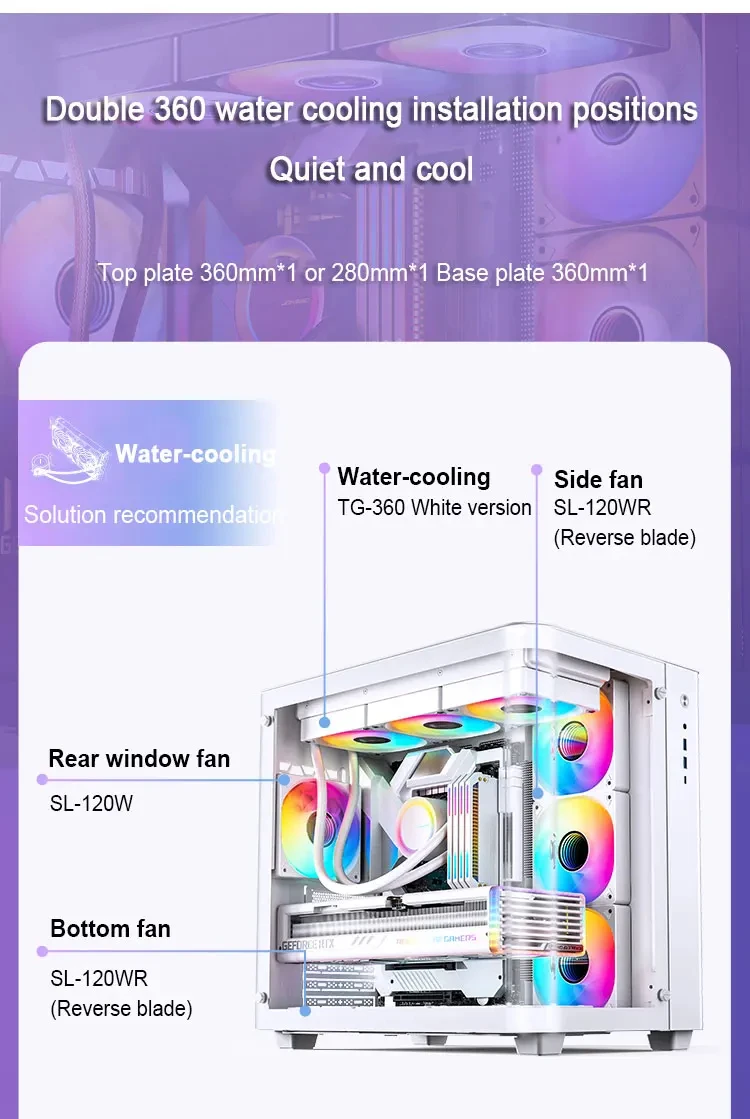 Sistema de refrigeración por agua: superior: 360mm * 1 o 280mm * 1; placa inferior 360mm * 1