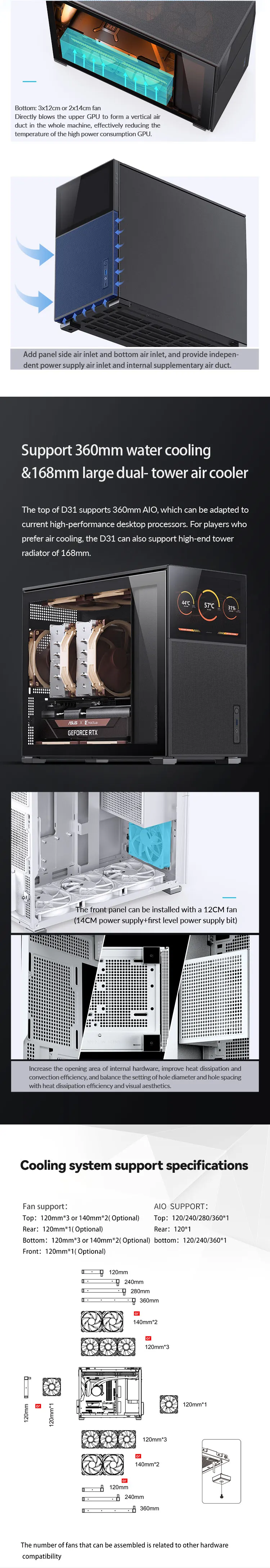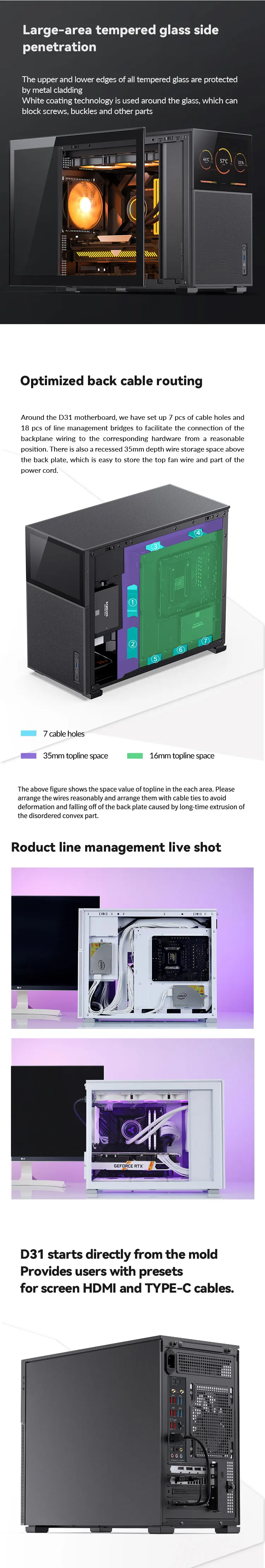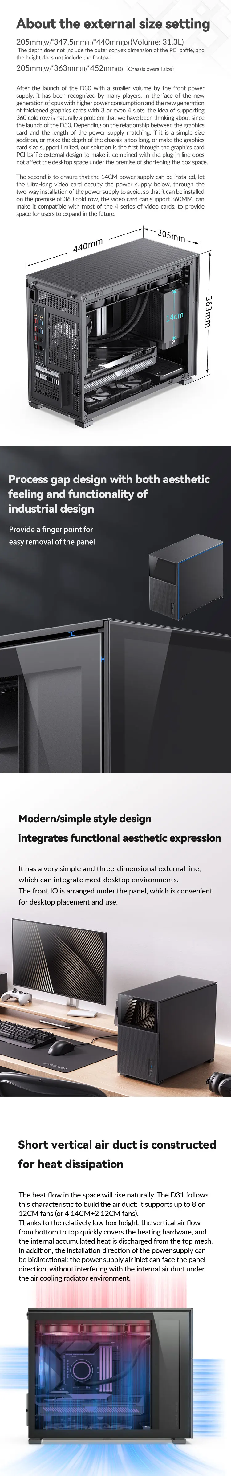 Comprar JONSBO-carcasa Pinecone D31, carcasa MATX ITX, resolución 1280x800, subpantalla de videojuegos, soporte ATX Power 360, chasis de escape en frío