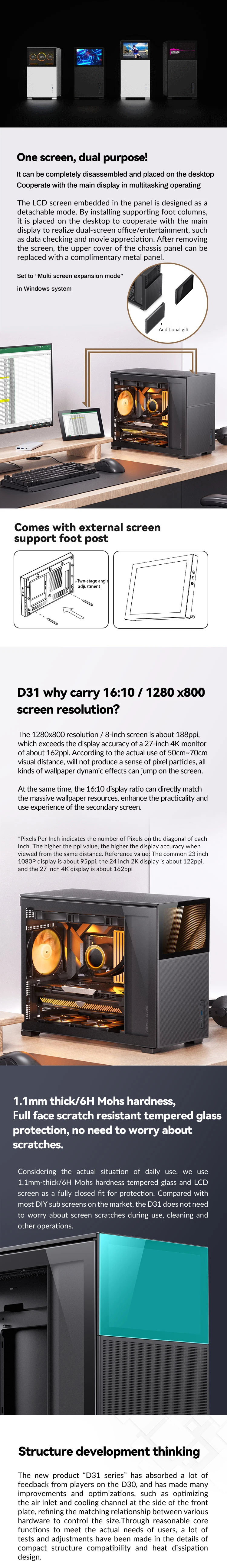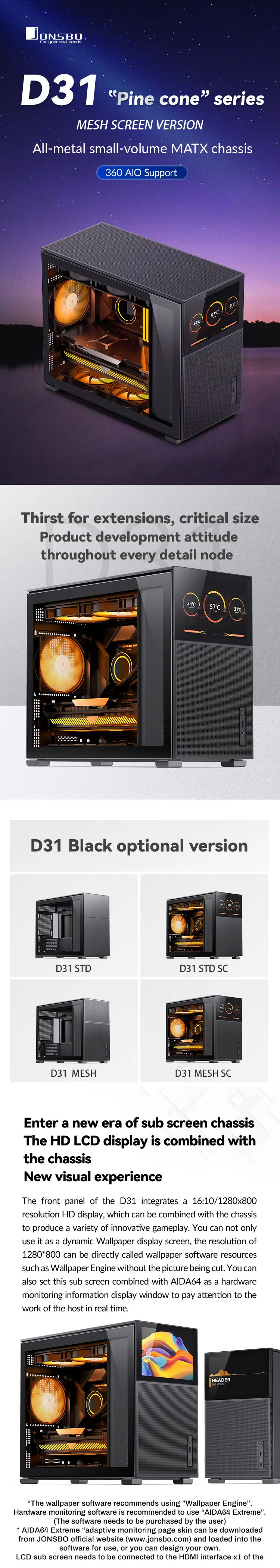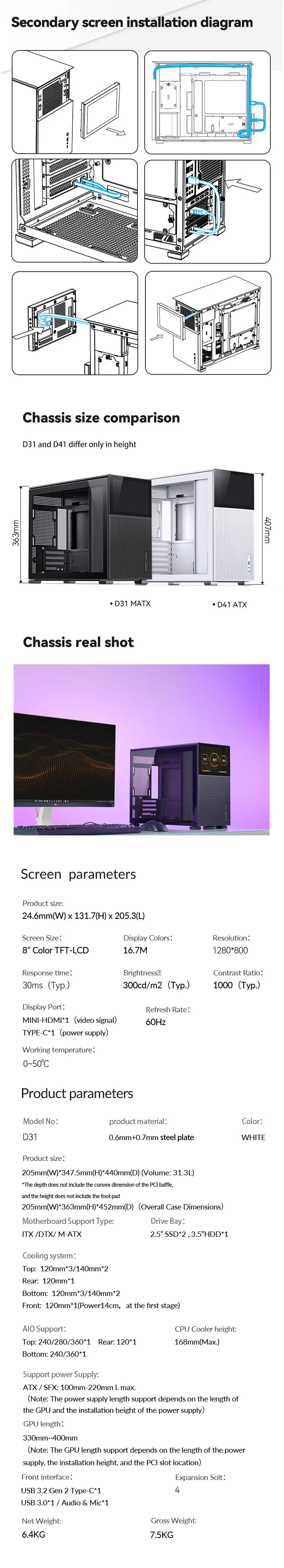 Comprar JONSBO-carcasa Pinecone D31, carcasa MATX ITX, resolución 1280x800, subpantalla de videojuegos, soporte ATX Power 360, chasis de escape en frío