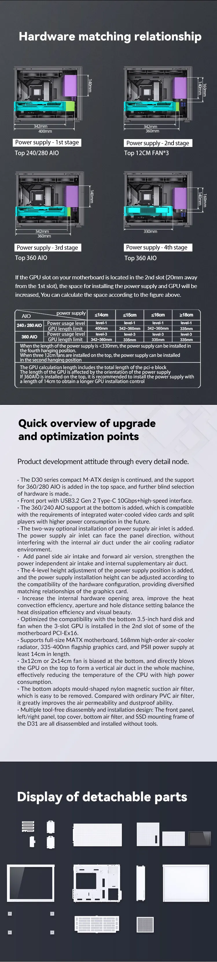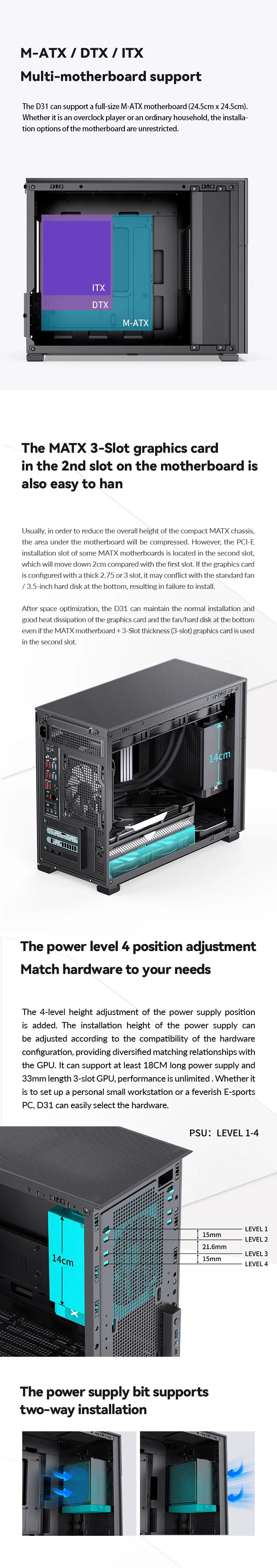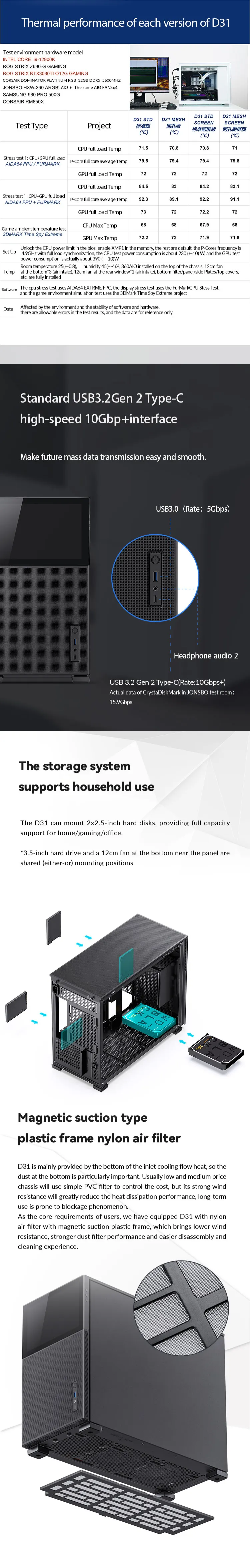 Comprar JONSBO-carcasa Pinecone D31, carcasa MATX ITX, resolución 1280x800, subpantalla de videojuegos, soporte ATX Power 360, chasis de escape en frío