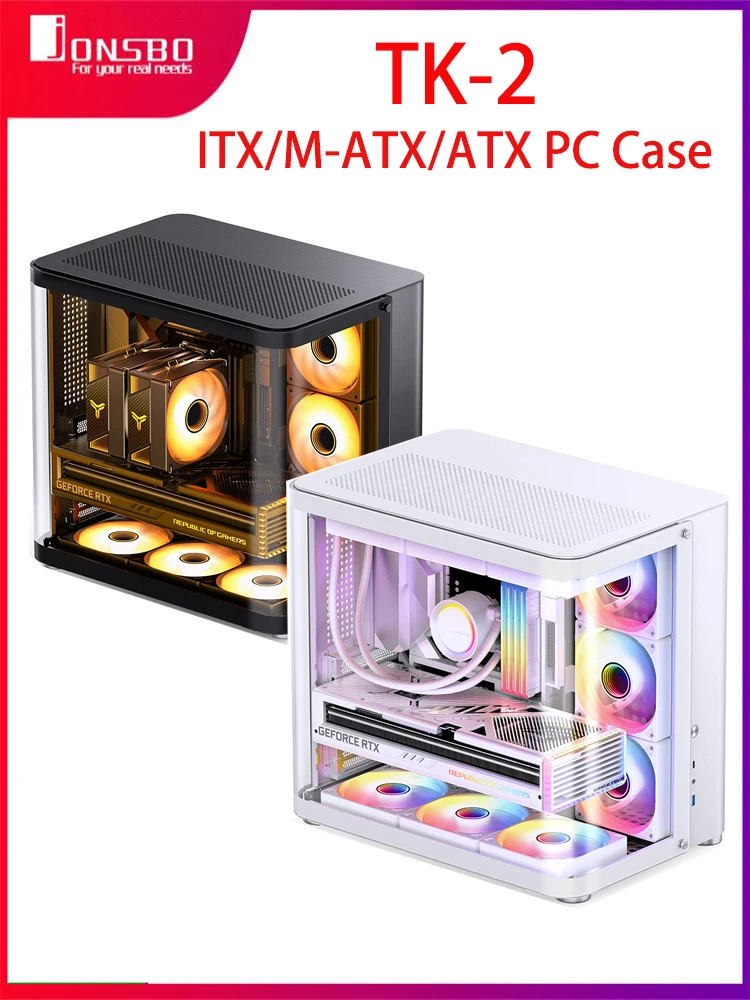 Comprar Jonsbo-carcasa TK-2 ITX/M-ATX/ATX para PC Gamer Cabinet Esports, carcasa de ordenador, chasis de escritorio, chasis translúcido lateral hiperbólico