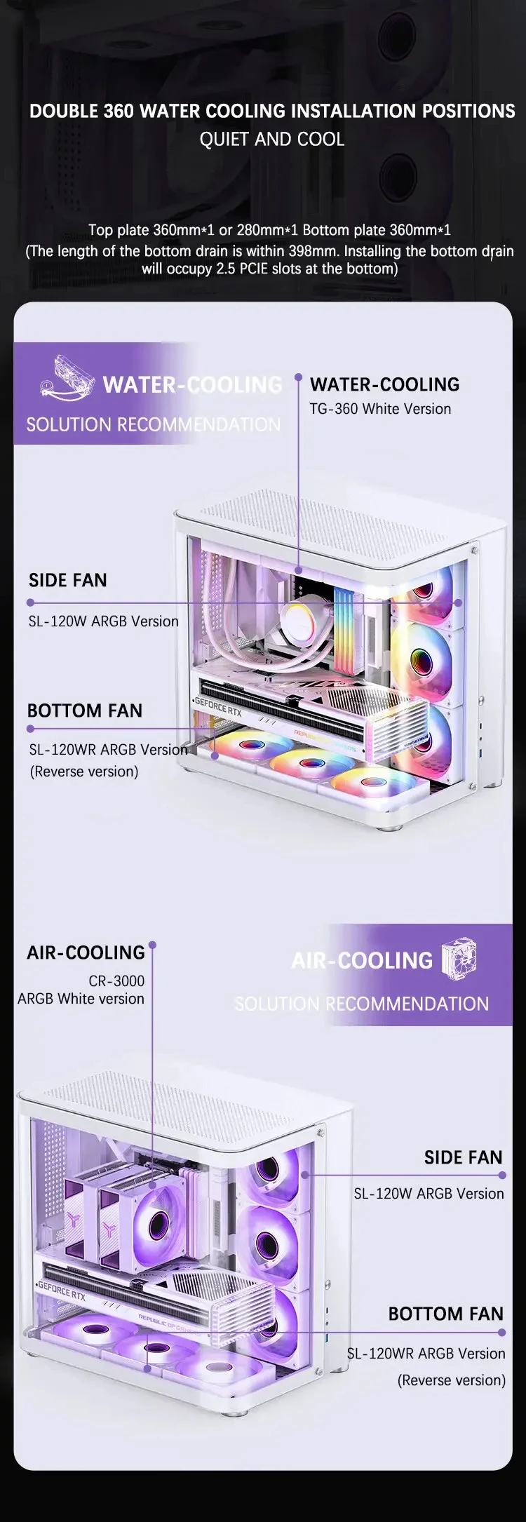 Sistema de refrigeración por agua: Superior: 360mm * 1 o 280mm * 1; placa inferior 360mm * 1