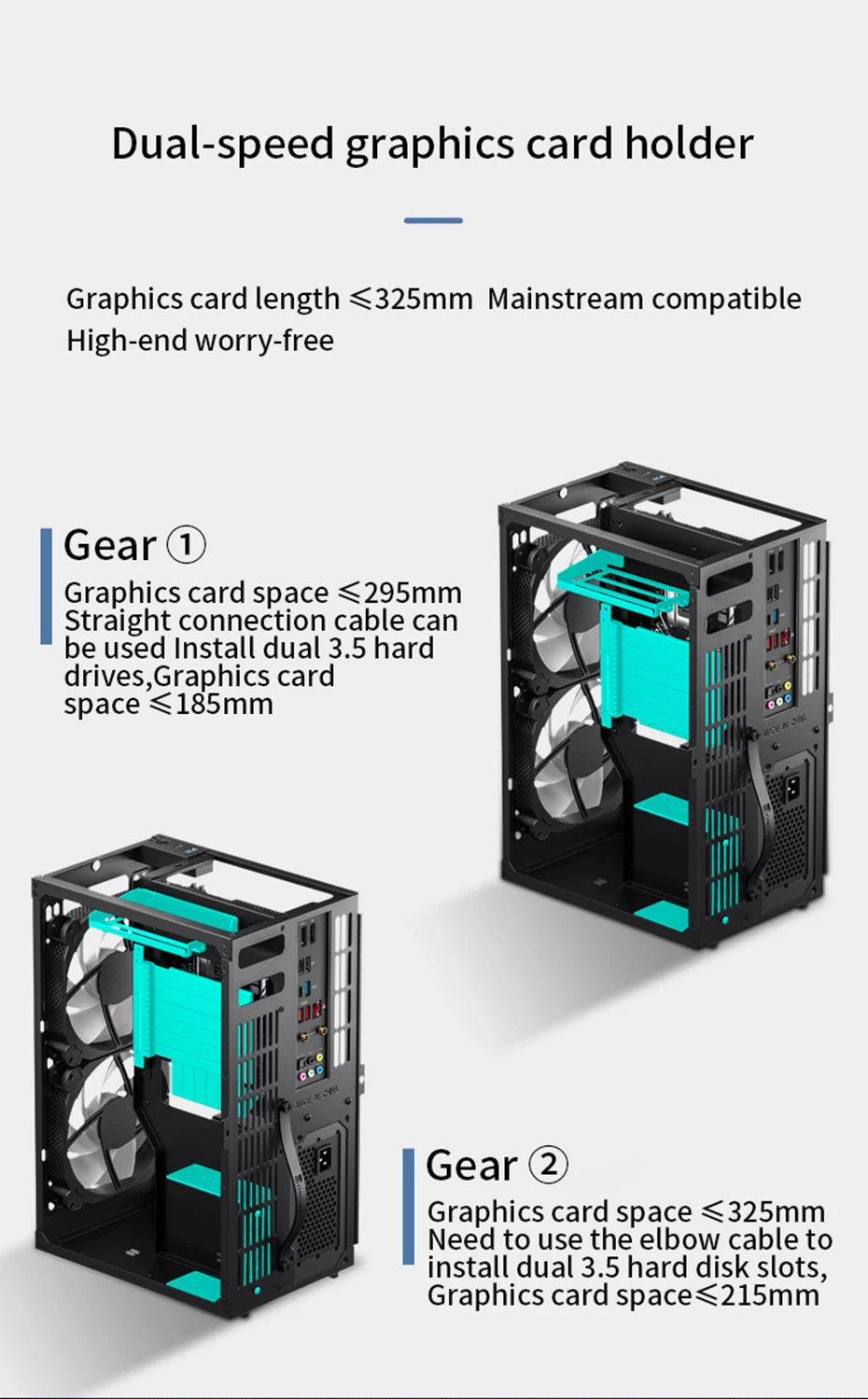 Espacio en el disco duro: 2.5SSD × 2/2.5SSD × 2 + 3.5HDD × 2 (tarjeta gráfica ≤ 185MM)