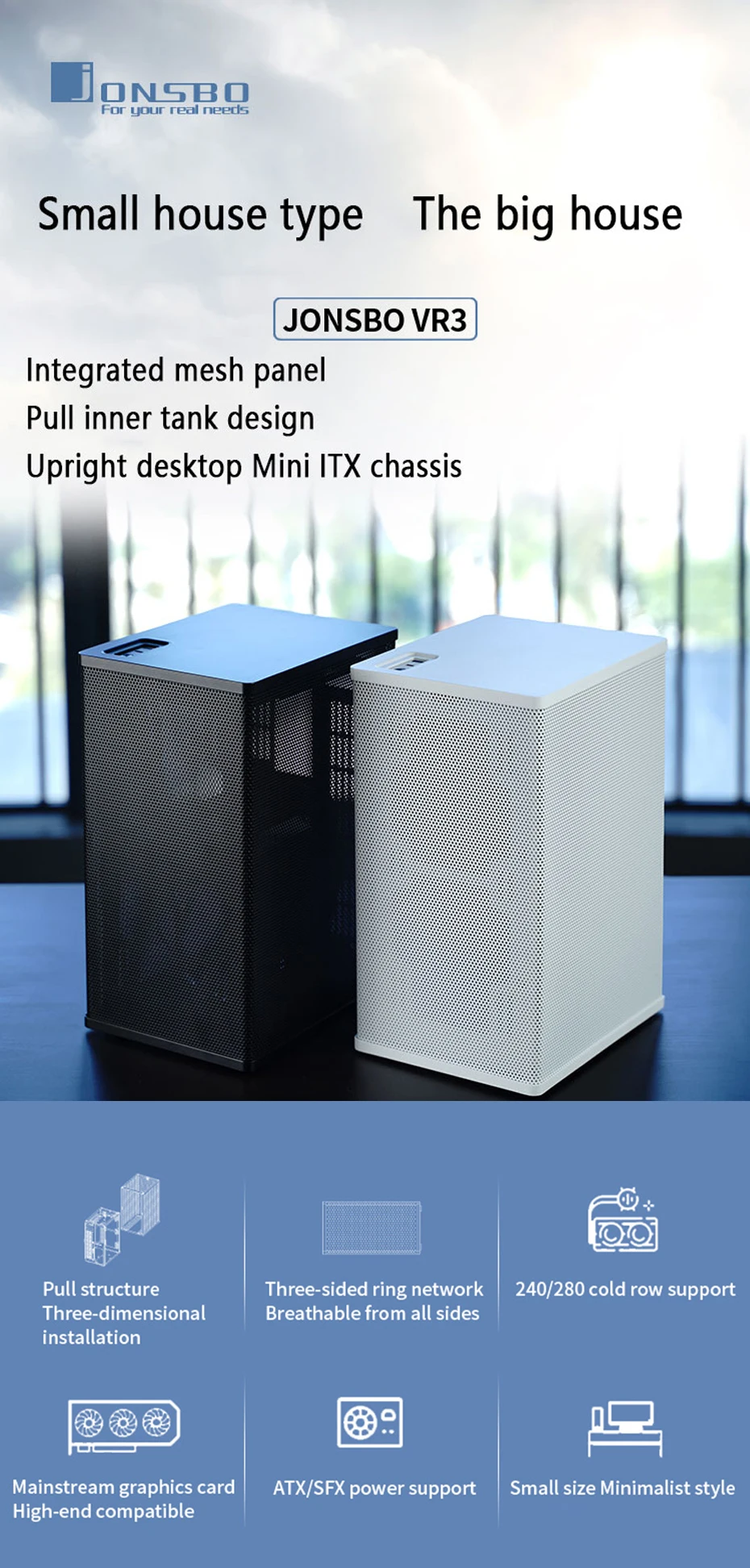 Comprar JONSBO-carcasa VR3 Mini ITX, dispositivo Multimedia todo en uno, 4 discos duros, chasis, PC, gabinete para jugadores, con Cable adaptador PCIE 4,0