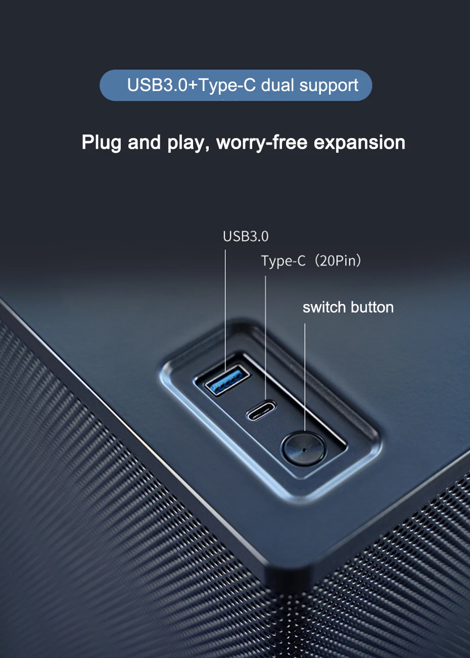 Interfaz frontal: Tipo C * 1(20 pines) + USB 3,0*1