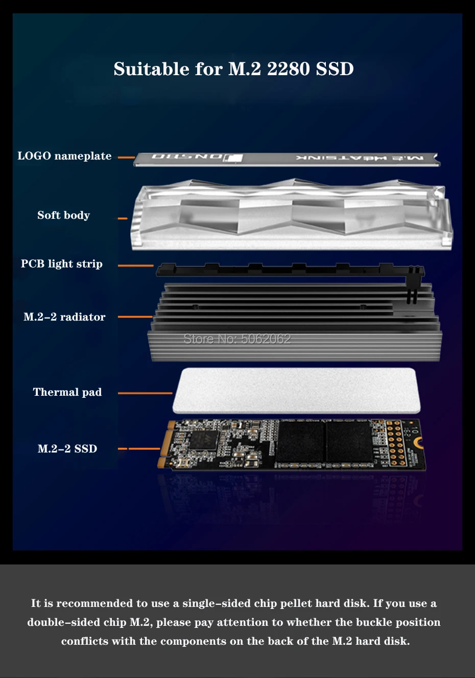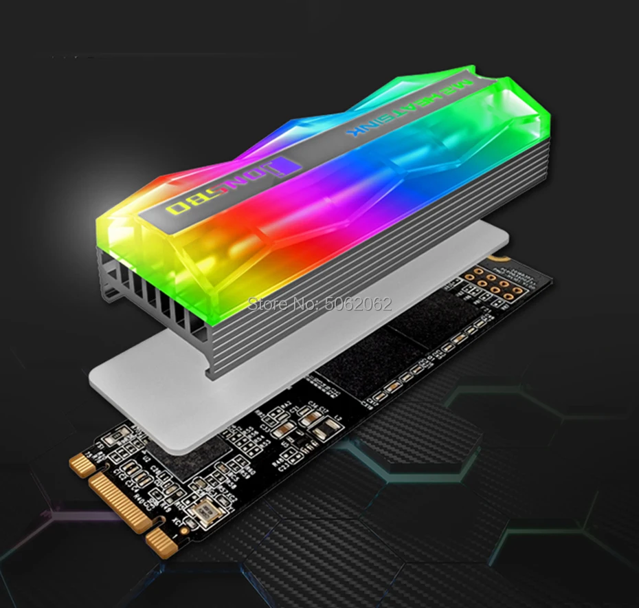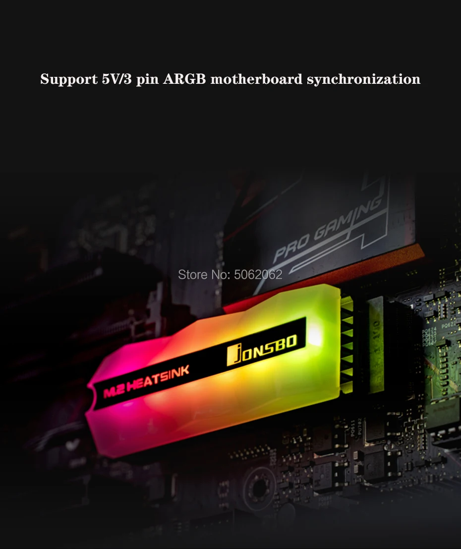 Comprar JONSBO-disipador de calor M.2 2280 m2 con luces ARGB de 5V/3 pines, disco duro de refrigeración SSD, radiador de aluminio