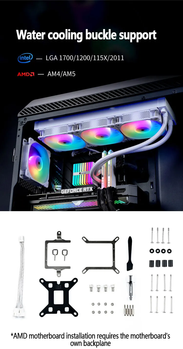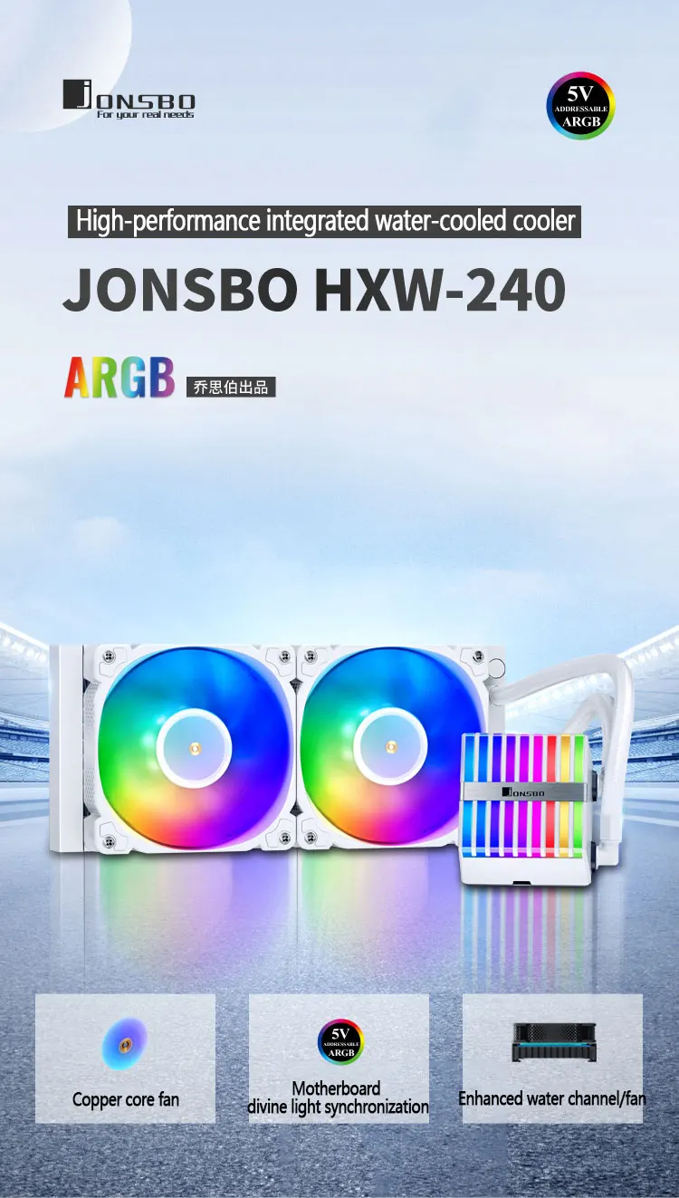 Comprar JONSBO-enfriador de agua blanco HXW-240 para CPU, ventilador PWM con núcleo de cobre ARGB, escape en frío mejorado de 5V, para LGA2011 115X 1700 AM4 AM5