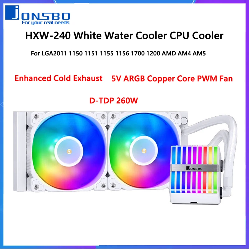 Comprar JONSBO-enfriador de agua blanco HXW-240 para CPU, ventilador PWM con núcleo de cobre ARGB, escape en frío mejorado de 5V, para LGA2011 115X 1700 AM4 AM5
