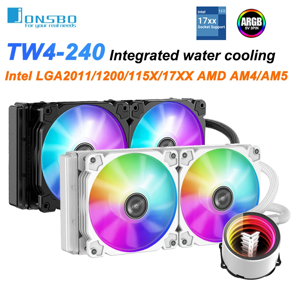 Comprar JONSBO-enfriador de agua para CPU, radiador líquido integrado de carcasa de 120mm, ARGB, TW4-240, para LGA2011 115X 1200 1700 AM4 AM5