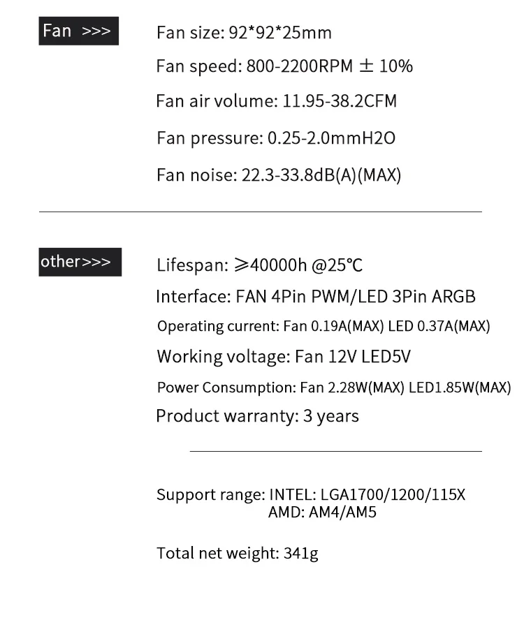 Tamaño del ventilador: 92mm * 92mm * 25mm