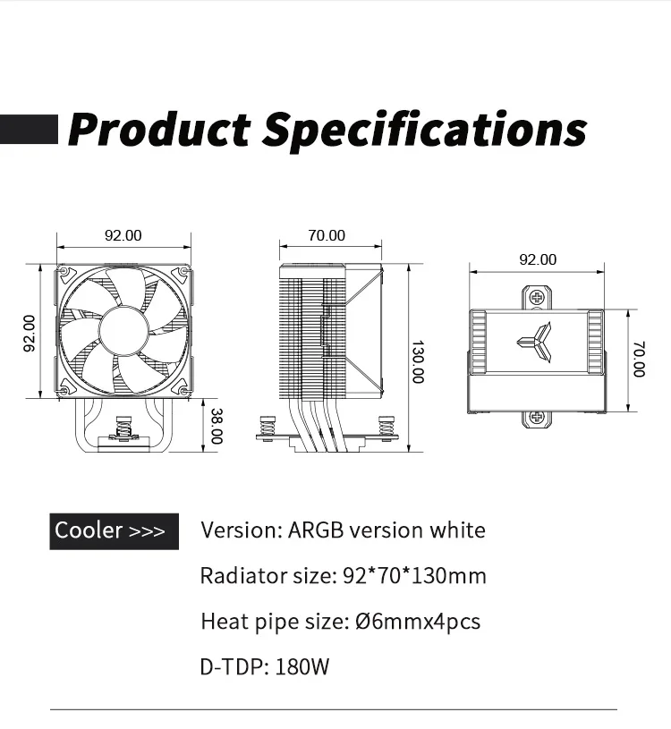 Tamaño del radiador: 92mm(L)* 70mm(W)* 130mm(H)