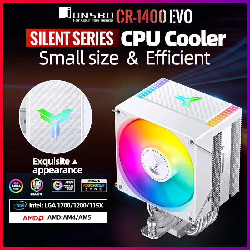 Comprar JONSBO-enfriador de CPU CR-1400EVO, torre de 4 tubos de calor, 12V, 4 pines, Intel LGA1700, 115X, 1200, AM5, ventilador de refrigeración, radiador 5V, 3 pines, ARGB