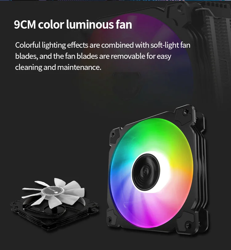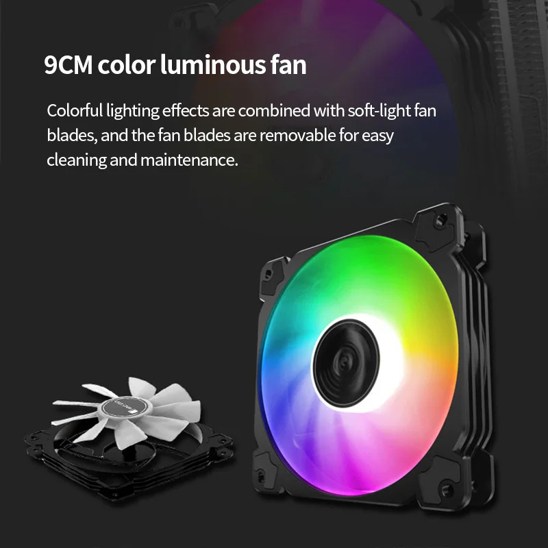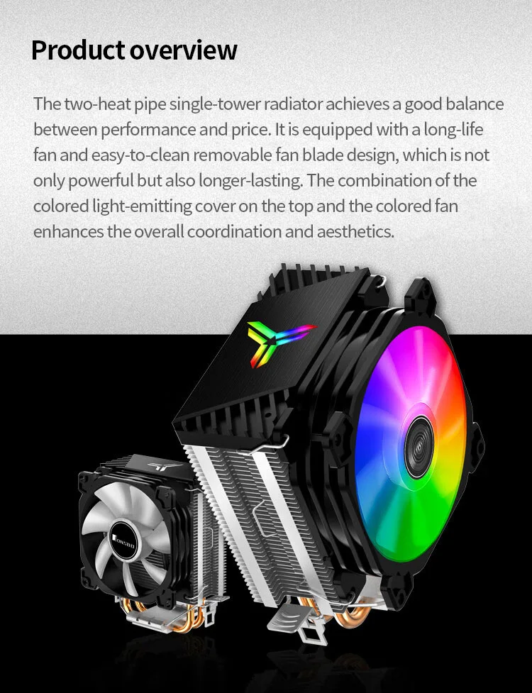 El radiador de una sola torre de dos tubos de calor logra un buen equilibrio entre rendimiento y precio.Está equipado con un ventilador de larga duración y un diseño de aspas de ventilador extraíble fácil de limpiar, que no solo es potente sino también más duradero.La combinación de la cubierta que emite luz de colores en la parte superior y el abanico de colores mejora la coordinación y la estética generales.