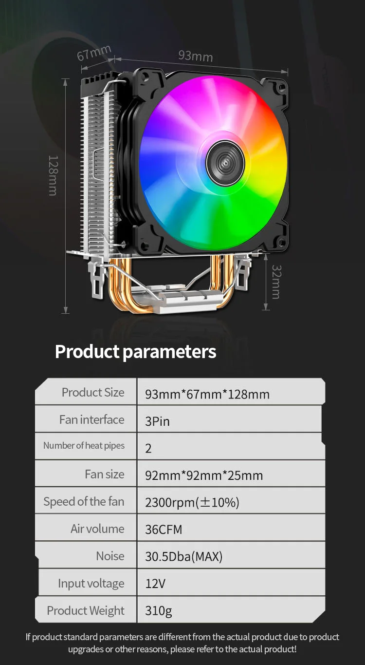 Tamaño del ventilador:92 mm * 92 mm * 25 mm