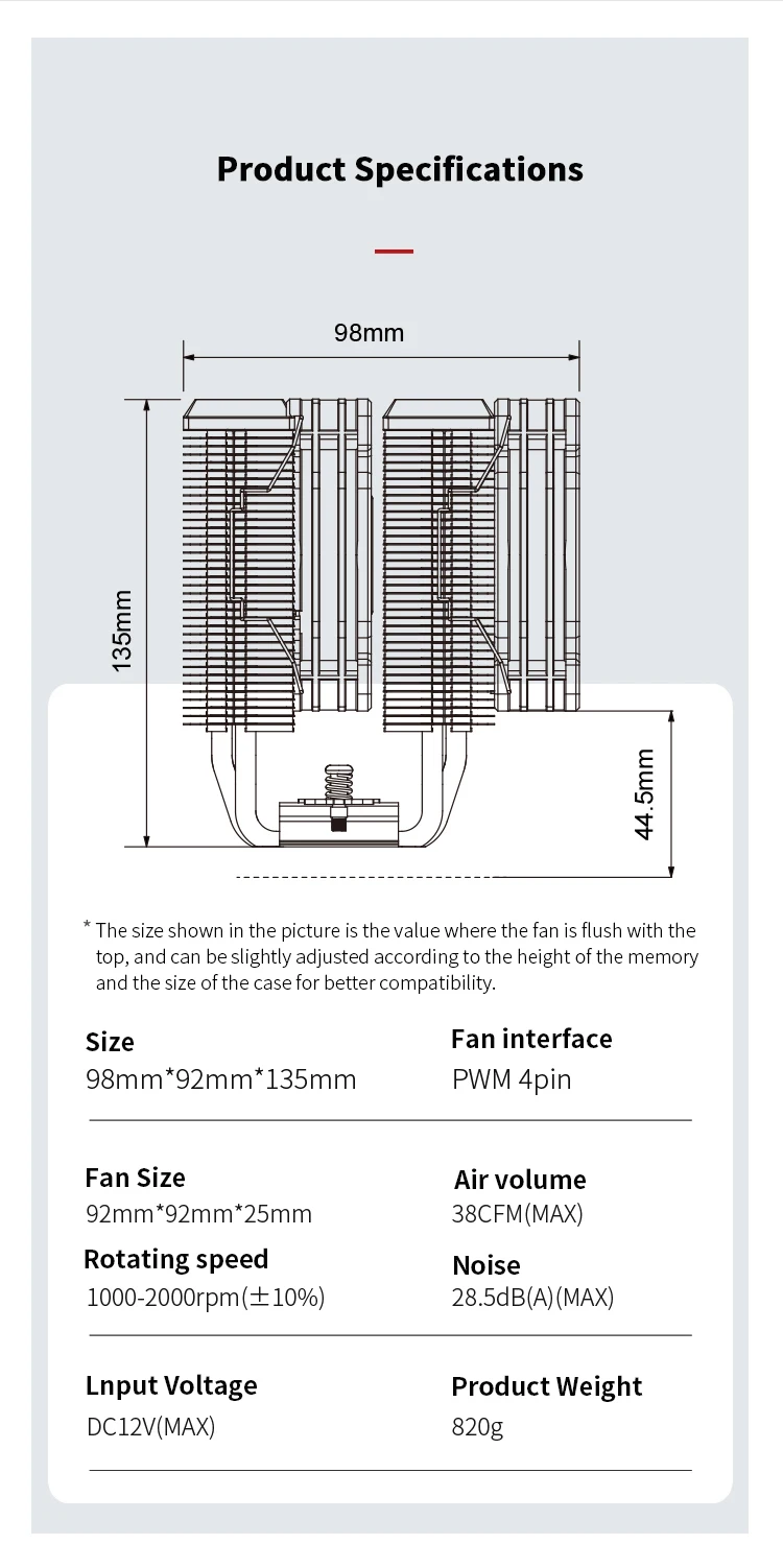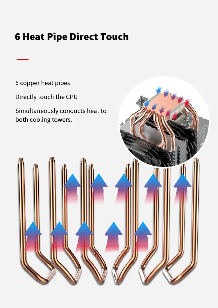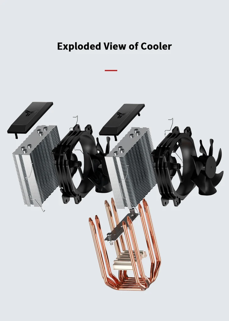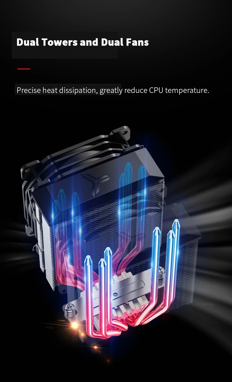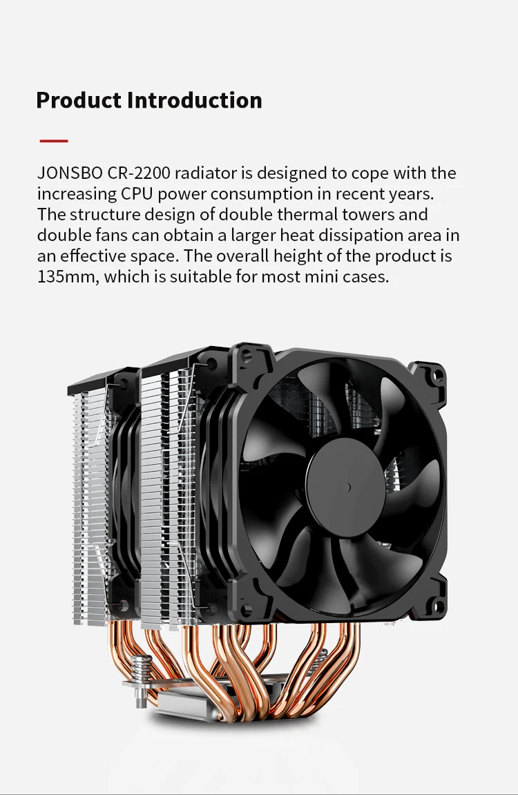 Comprar JONSBO-enfriador de CPU CR2200, 6 tubos de calor, ventilador Dual, 4 pines, PWM, silencioso, Intel LGA 1150 1200 1700 AM3 AM4, radiador de refrigeración de CPU silencioso