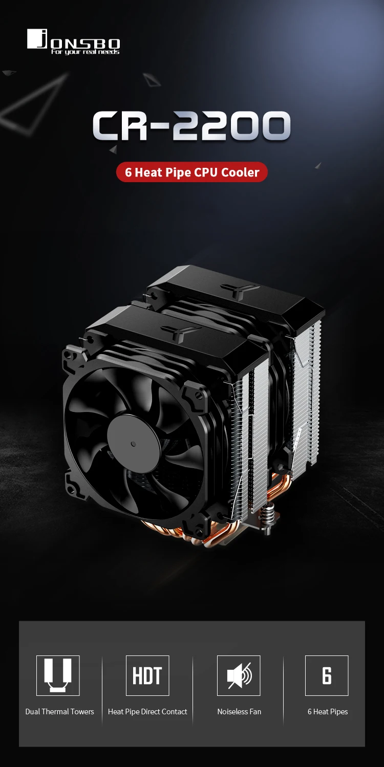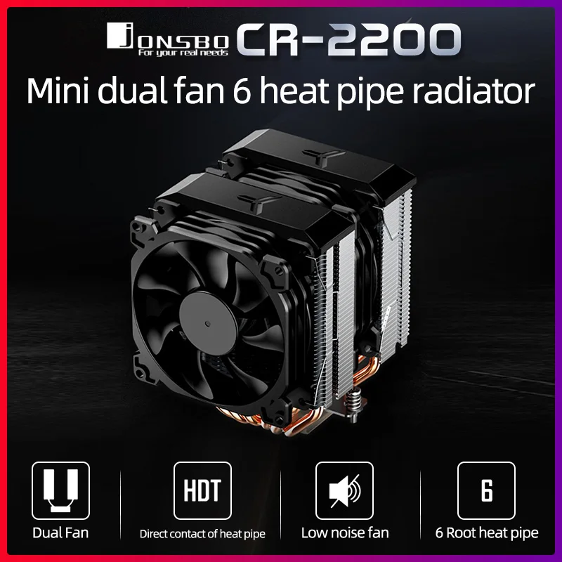 JONSBO-enfriador de CPU CR2200, 6 tubos de calor, ventilador Dual, 4 pines, PWM, silencioso, Intel LGA 1150 1200 1700 AM3 AM4, radiador de refrigeración de CPU silencioso